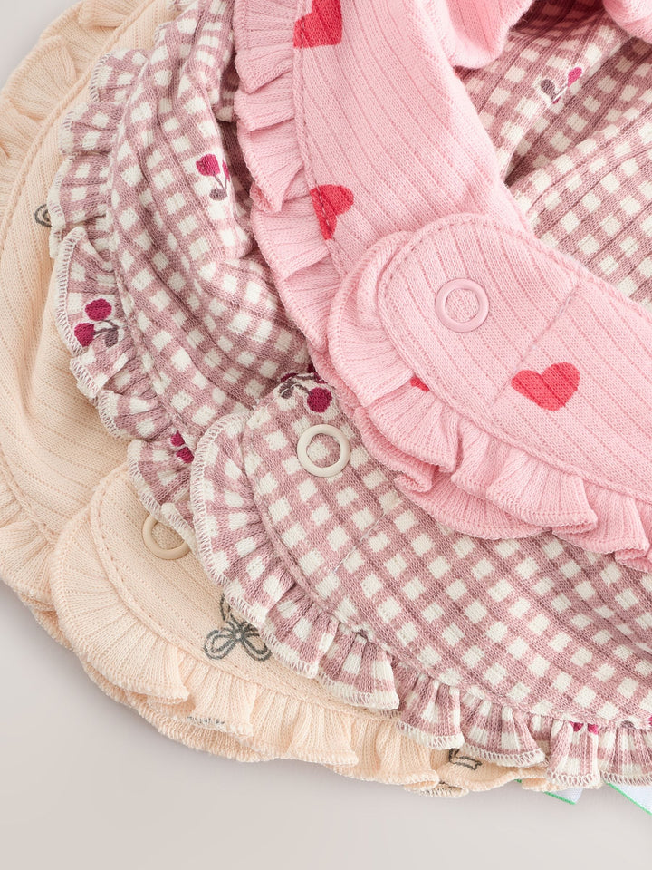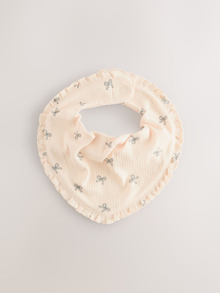 This 3-pack of bibs are made from a pure cotton construction, featuring frill detailing to the hem and a popper fastening, finished with a dribble proof layer. 3-pack 100% cotton Frill detailing Dribble proof layer 3 x Bib Main 100% Cotton. Back Lining 65% Cotton, 26% Recycled polyester, 9% Polyurethane. Country of Origin: India Warning: Keep away from fire and flames.