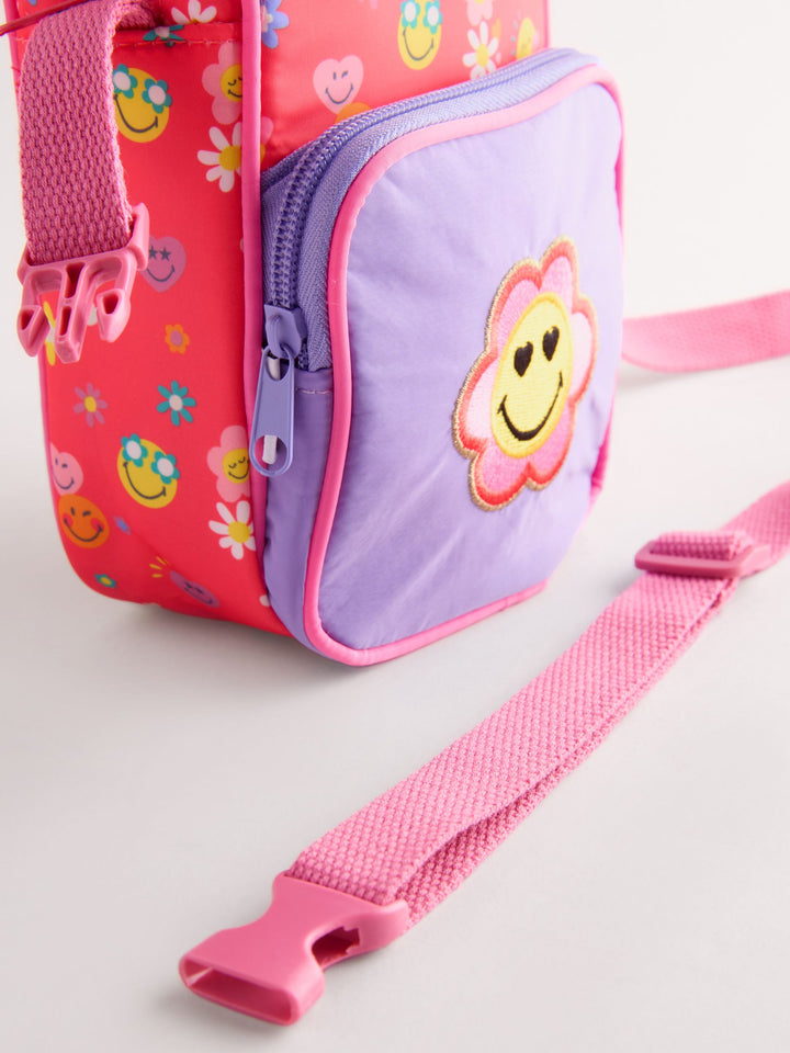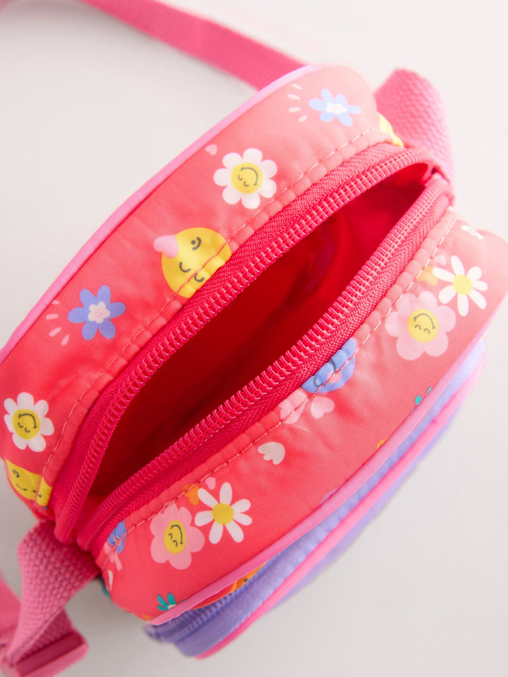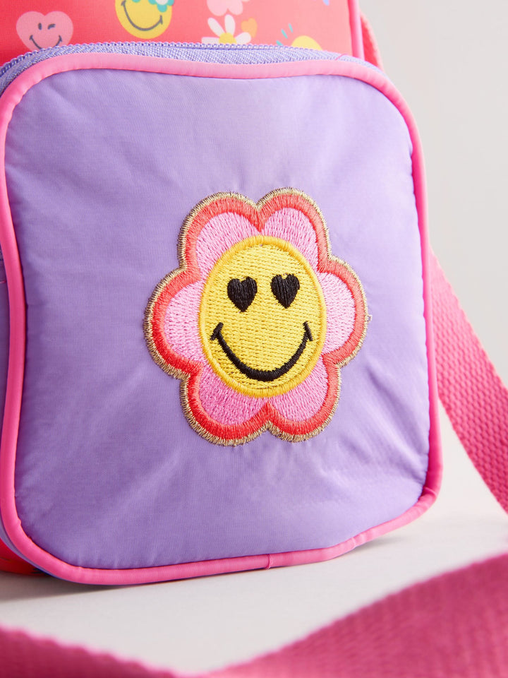 Colourful cross body bag to brighten up everyday outfits with classic smiley embroidered patch and playful printed details. Two zipped pockets and adjustable straps.Warning! Choking And Strangulation Hazard - Not Suitable For Children Under 36 Months Due To Small Parts And Long Straps. Height 17.5cm Width 10.5cm Depth 4cm Polyester Height 17.5cm Width 10.5cm Depth 4cm 100% Polyester. Country of Origin: China