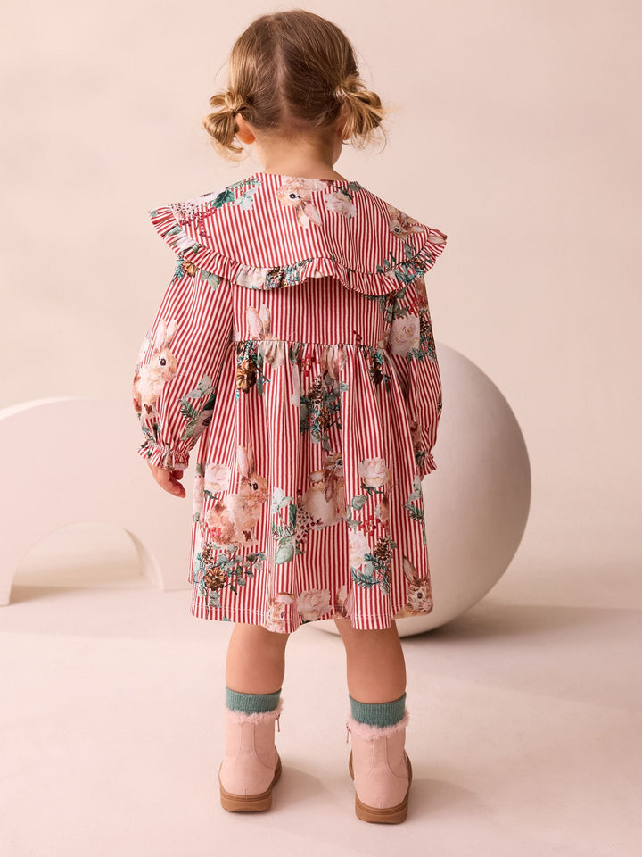 Red Stripe Long Sleeve Collared Dress (3mths-7yrs)
