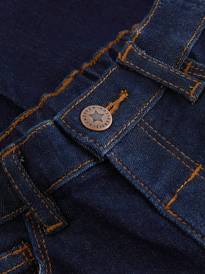 Cute and comfy, our jeans in rinse wash will be a wardrobe must-have for your little one. Crafted from a soft and stretchy cotton blend, the classic silhouette is further complemented with a traditional five-pocket design and a zip fly and button fastening. Team them with their favourite jumper or T-Shirt and trainers for the perfect playtime look. Regular fit Comfortable stretch fabric Snap fastening with mock fly Five-pocket styling Belt loops 68% Cotton, 27% Polyester, 3% Viscose, 2% Elastane. Country of Origin: Bangladesh