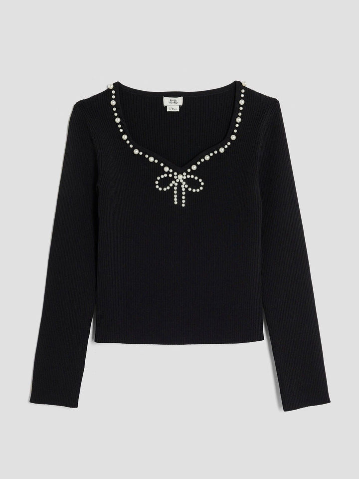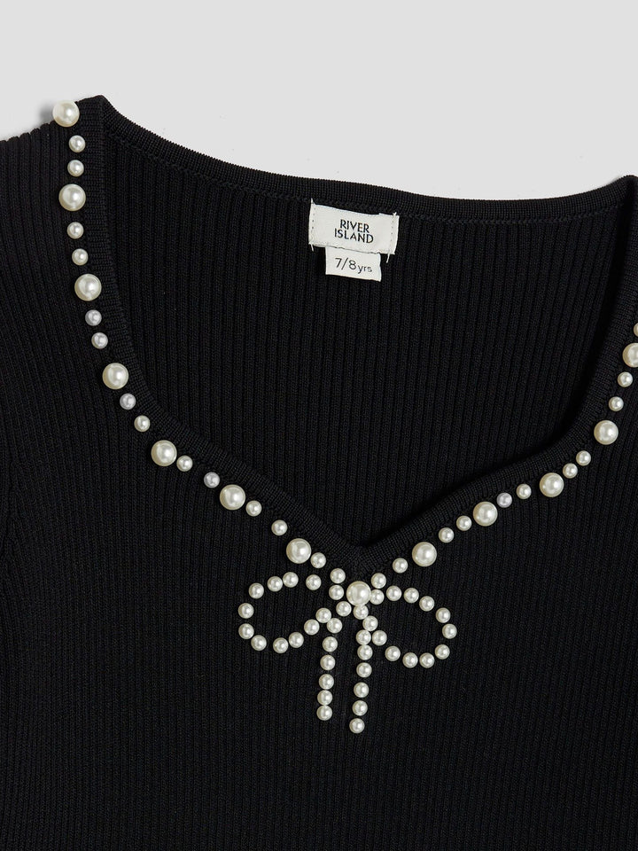River Island Black Girls Pearl Sweetheart Top
