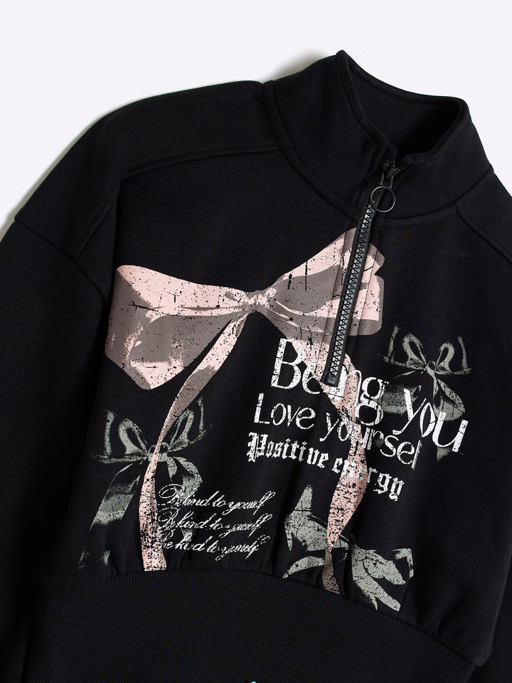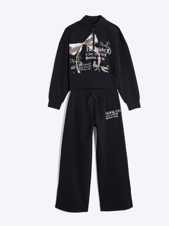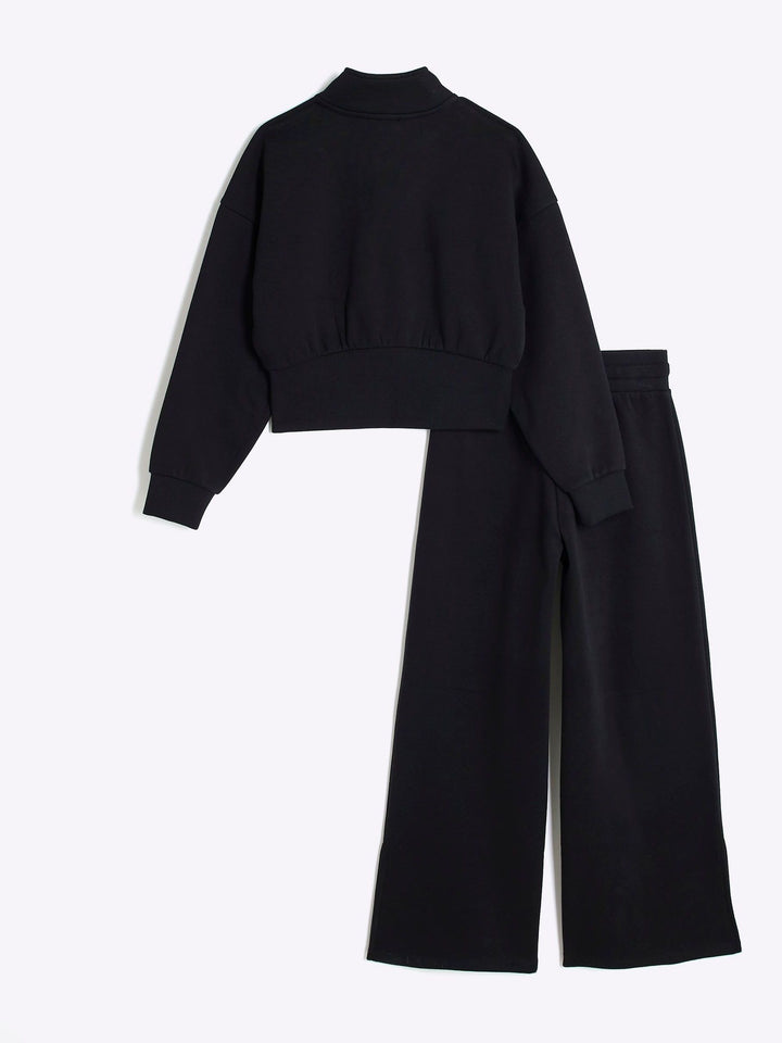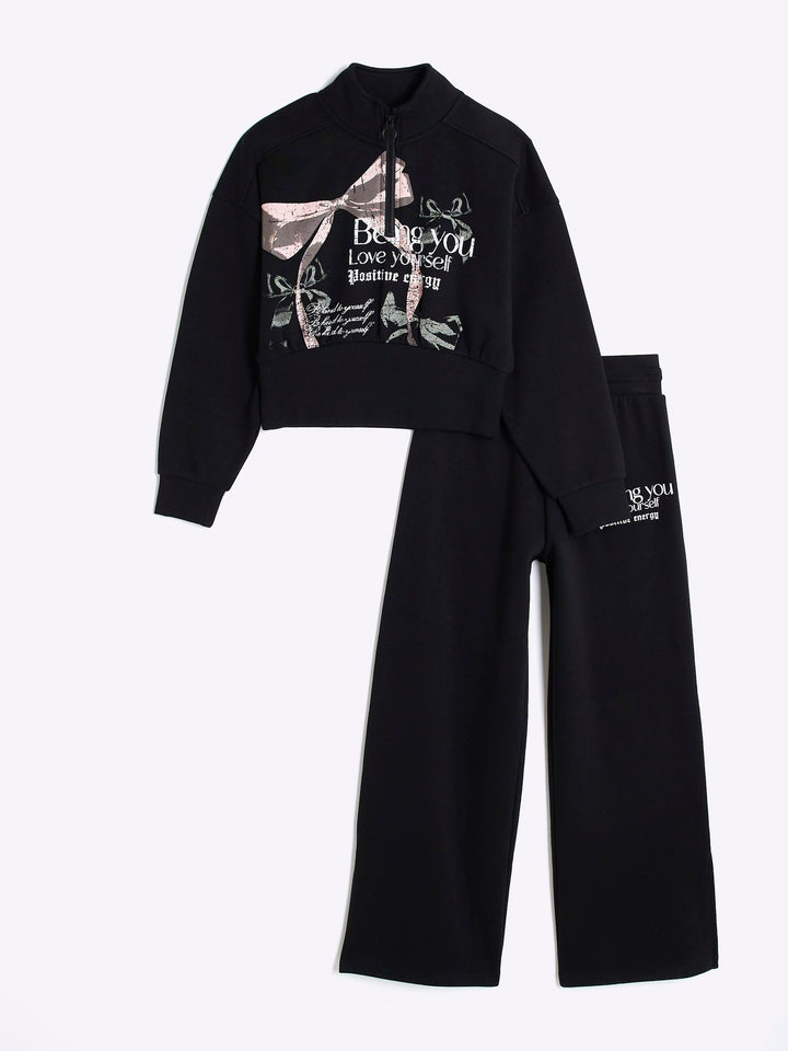 River Island Black Half Zip Bow 100% Cotton Sweat Set