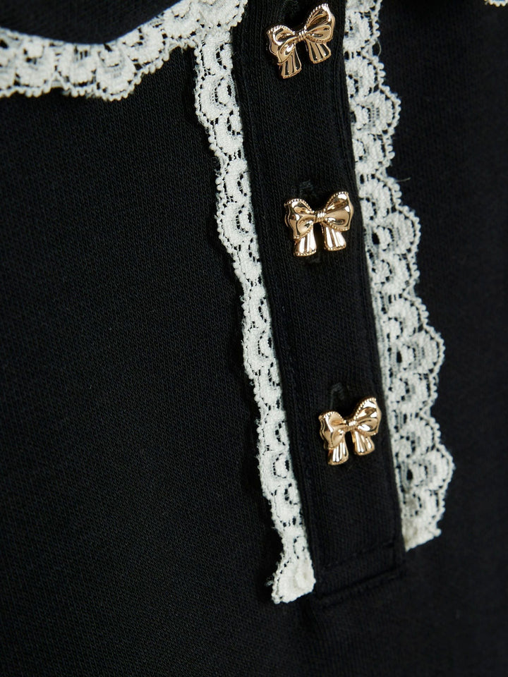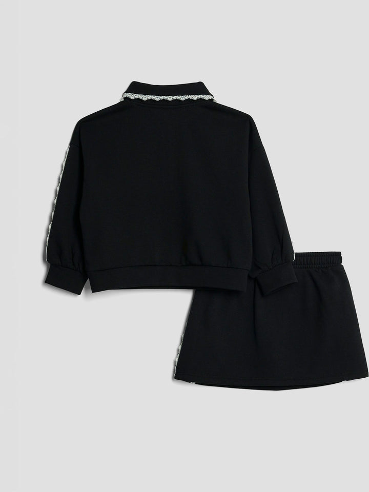 River Island Black Younger Girls Lace Collar Sweatshirt and Skirt Set