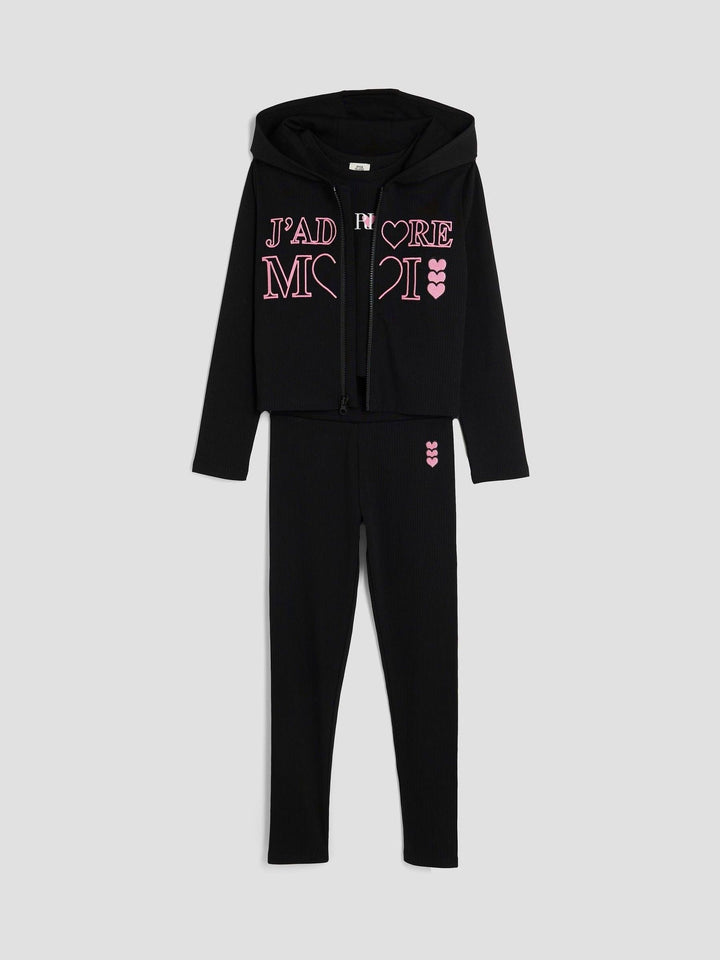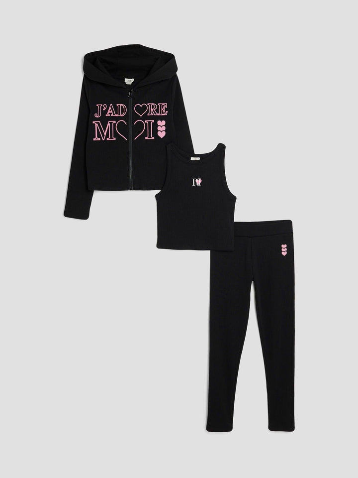 3 Piece Set Hoodie Hooded Zip fastening Graphic print Long sleeves Tank top Crew neck Embroidered RI graphic Short sleeves Leggings Elasticated waist Machine washable. 95% Cotton, 5% Elastane. Country of Origin: Bangladesh