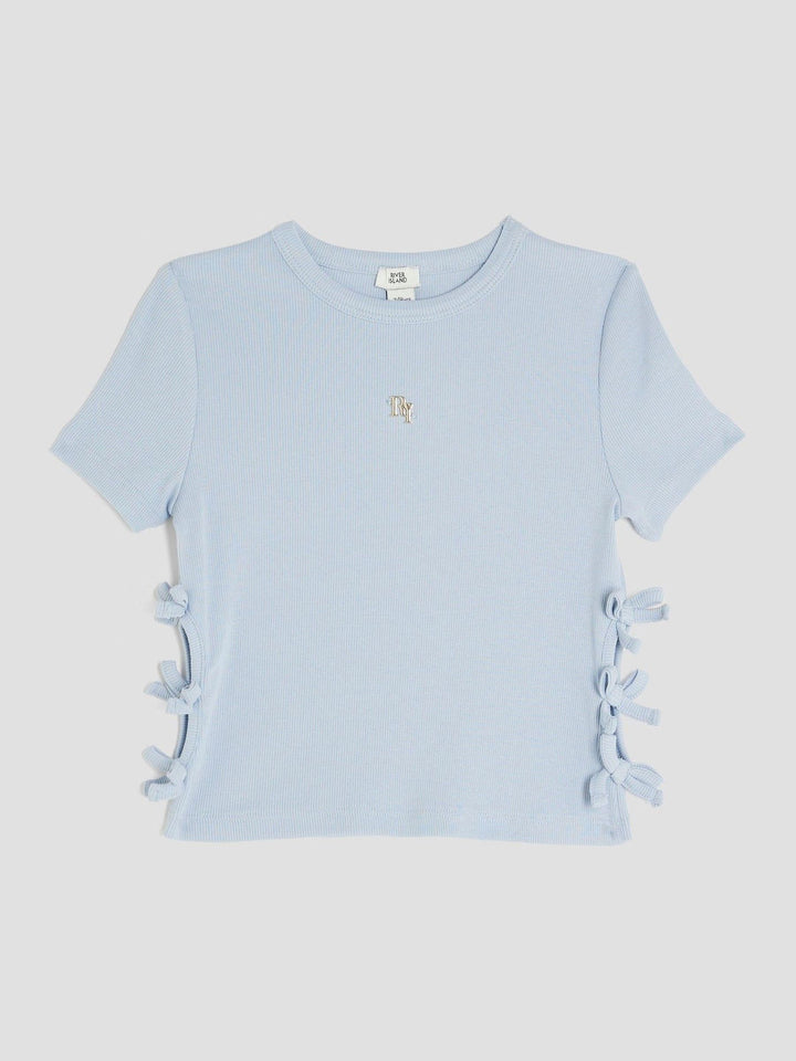 River Island Blue Girls 3D Bow Ribbed Top