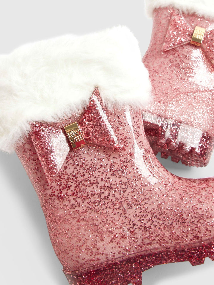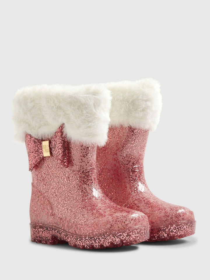 River Island Boots Glitter Fur Cuff Bow Wellies