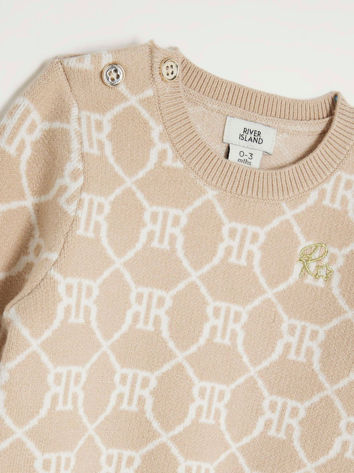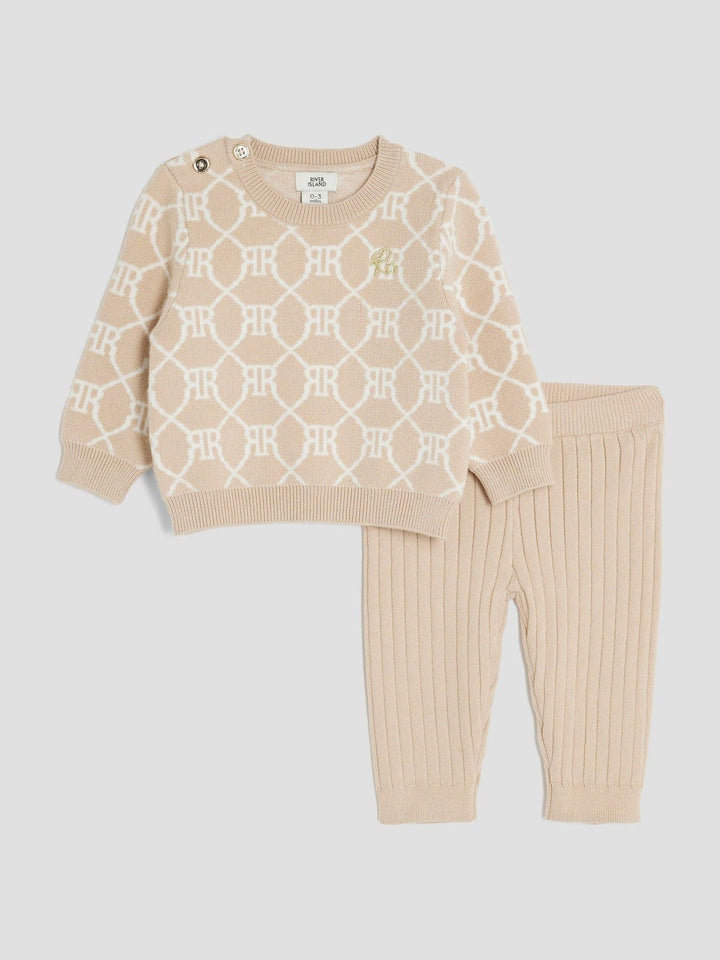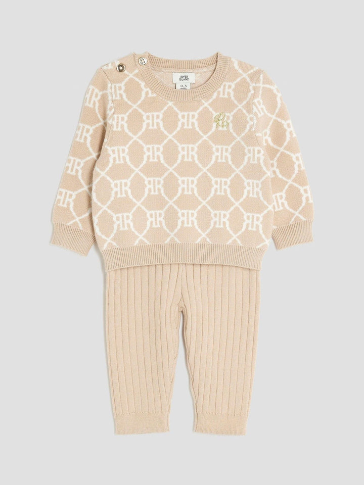 River Island Brown Baby Boys Monogram Knit Jumper Set
