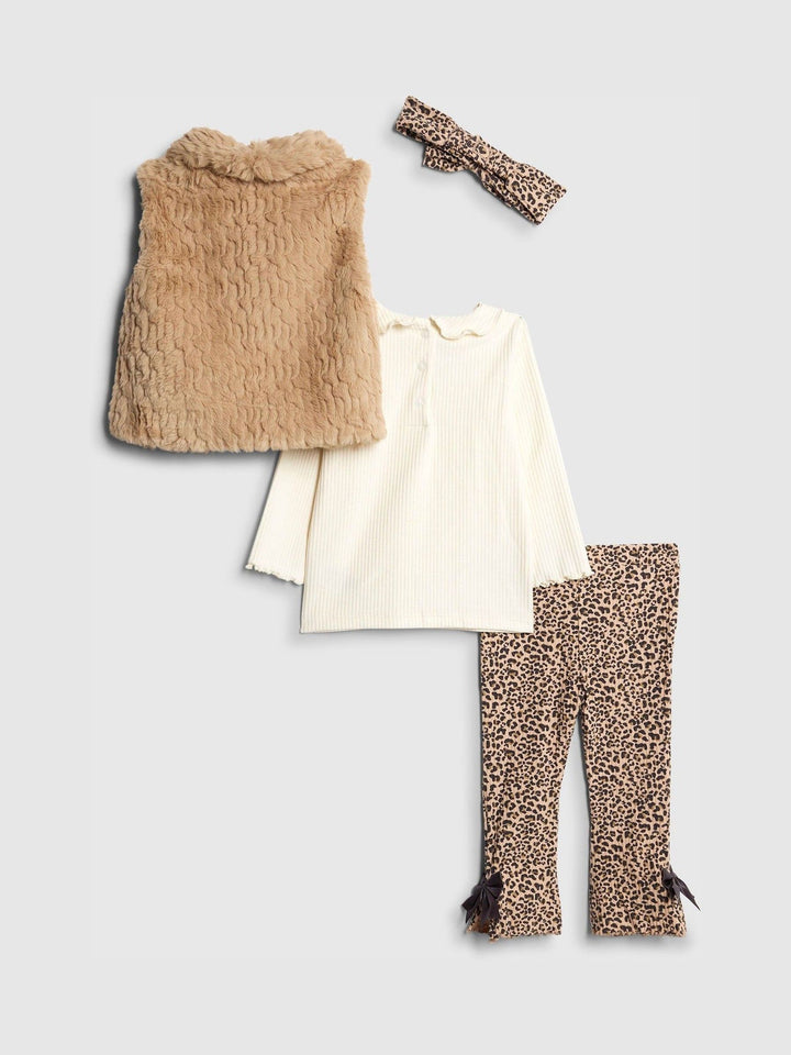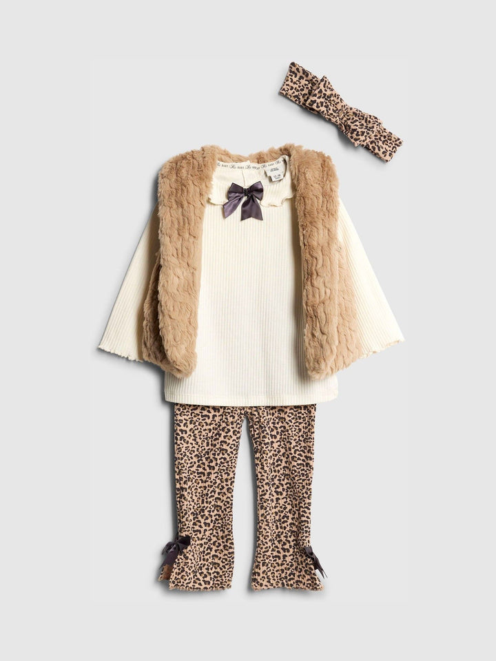 River Island Brown Baby Girl Leopard Print Gilet and Headband Set