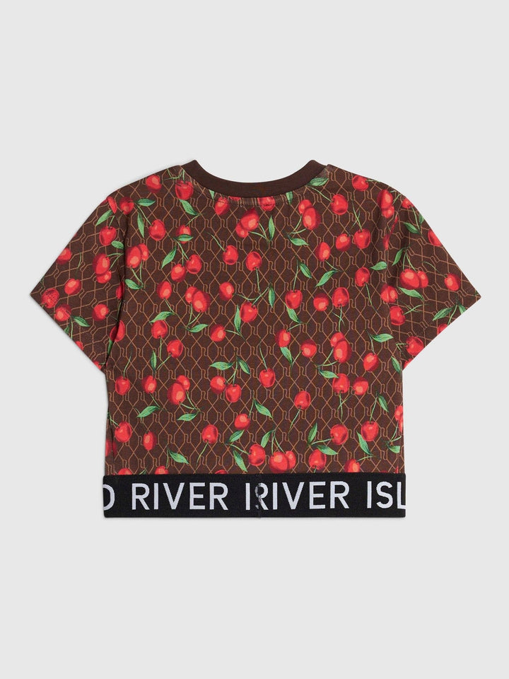 River Island Brown Cherry Monogram Waist Band T-Shirt