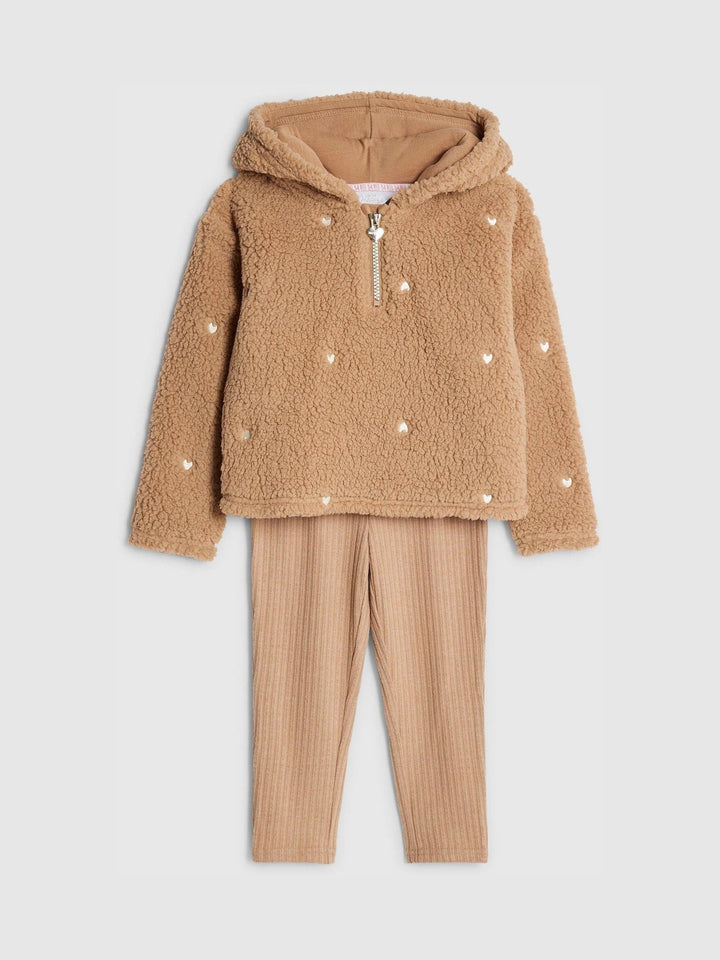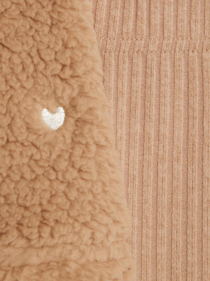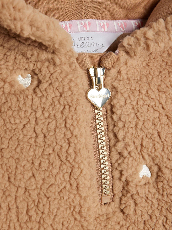 River Island Brown Heart Borg Cosy Half Zip & Leggings Set