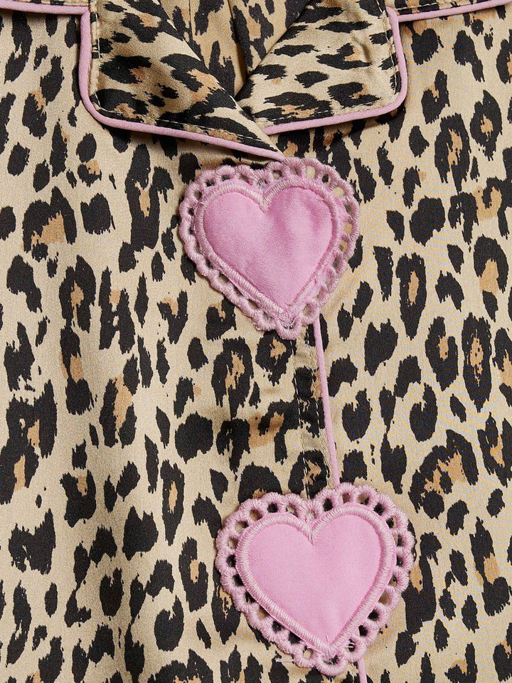 River Island Brown Leopard Heart Placket Pyjamas