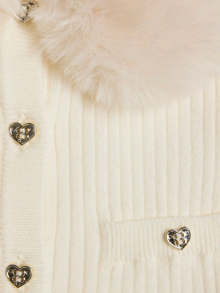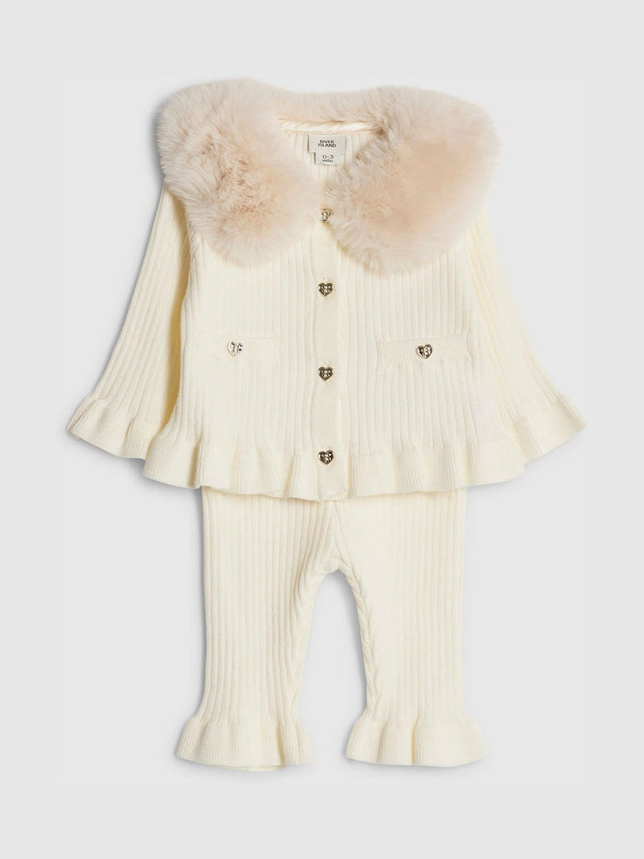 River Island Cream Baby Girls Fur Collar Cardigan and Trouser Set