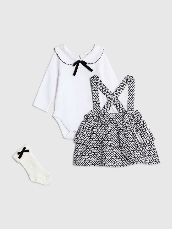 River Island Cream Baby Girls Jacquard Pinny Dress Set