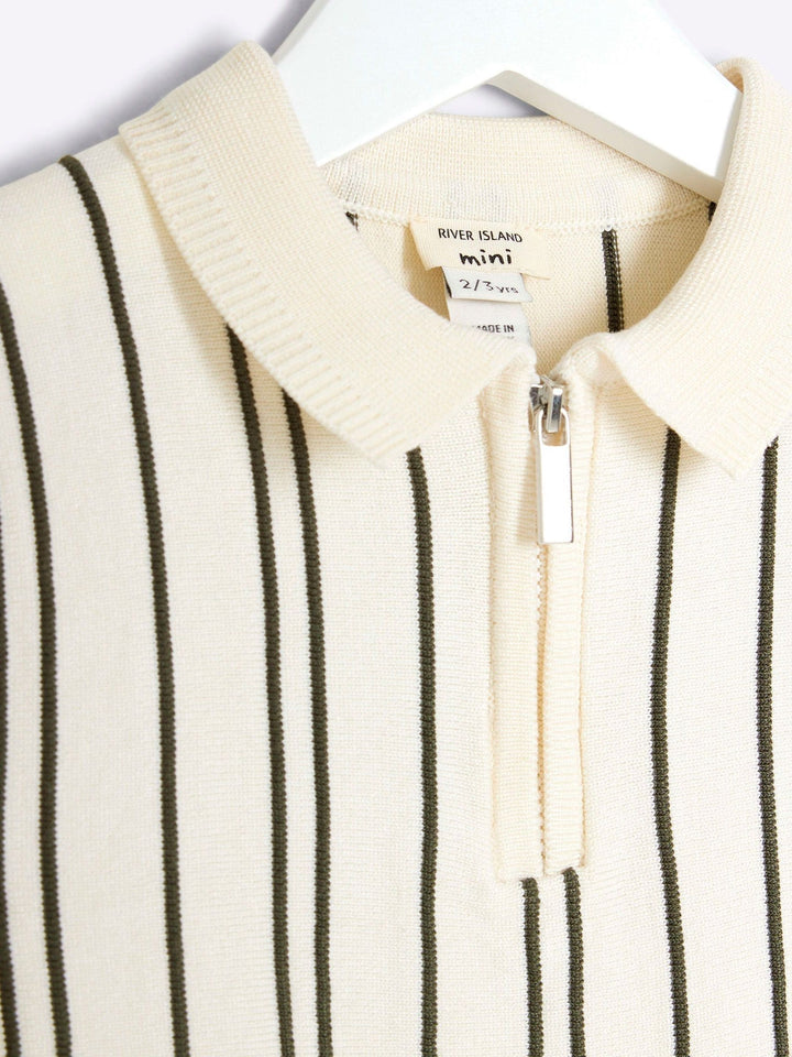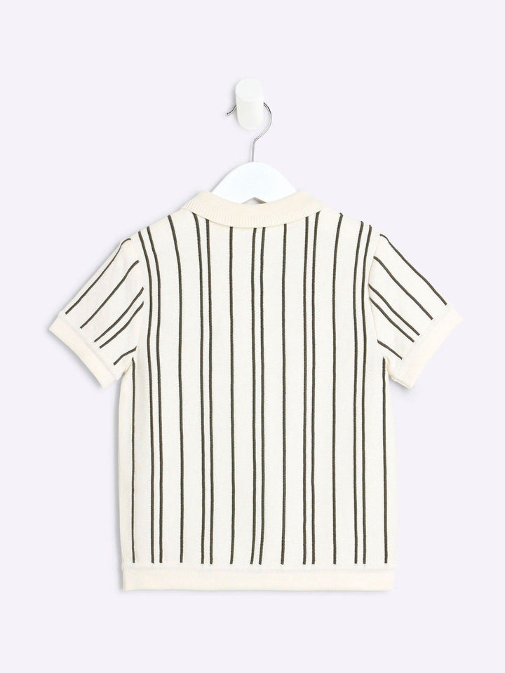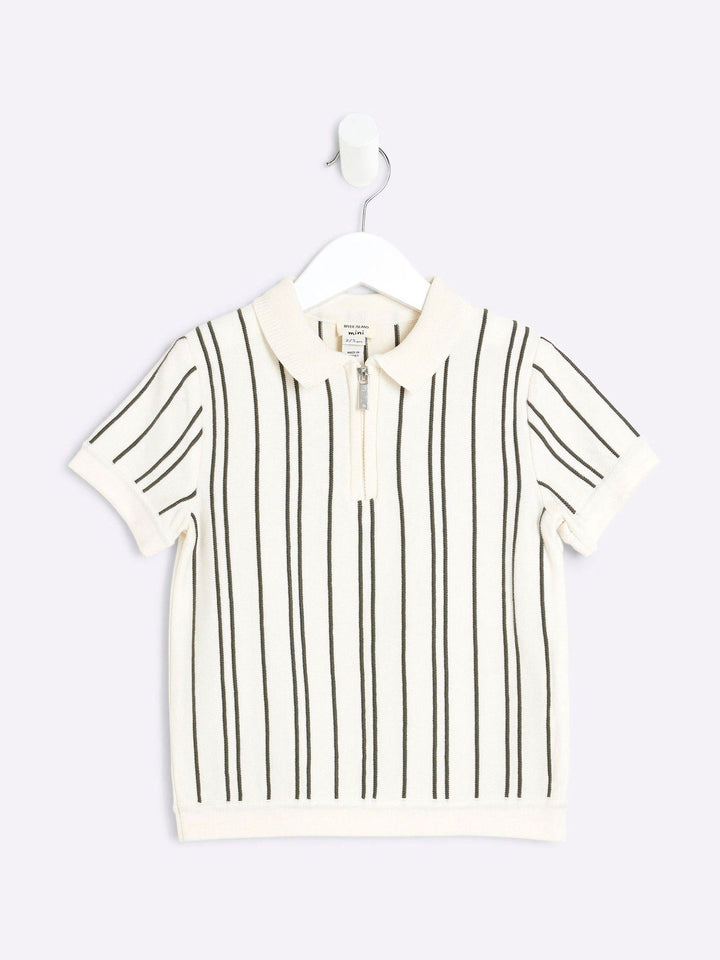 River Island Cream Chrome Vertical Stripe 100% Cotton Polo Shirt