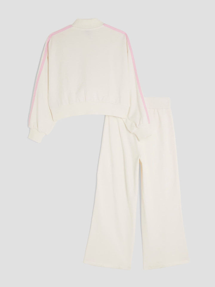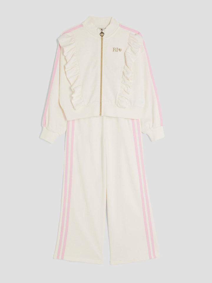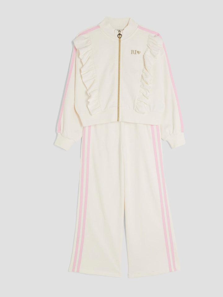 Set of 2 Taped style Jacket: High neckline Embroidered RI graphic Cream Frilled Zipped Long sleeves Bottoms Elasticated waist Washable. 100% Cotton. Country of Origin: Turkey
