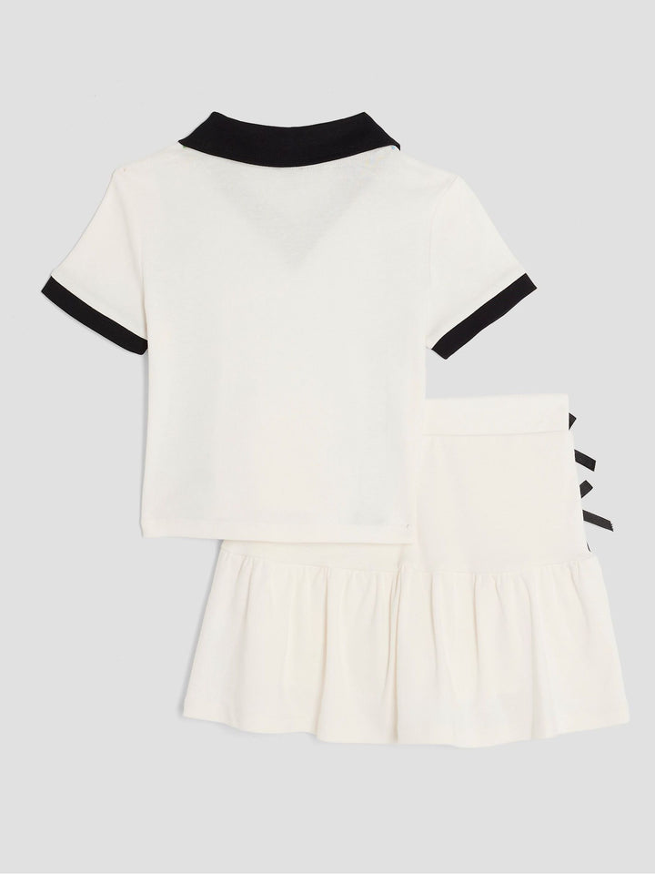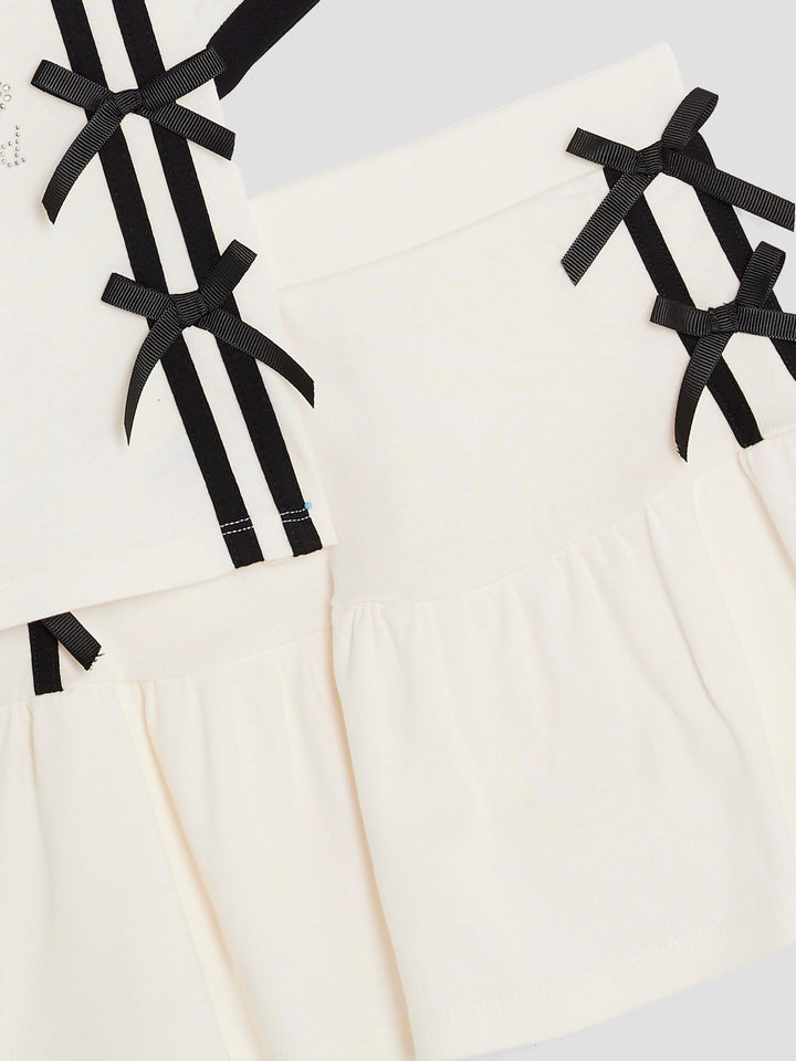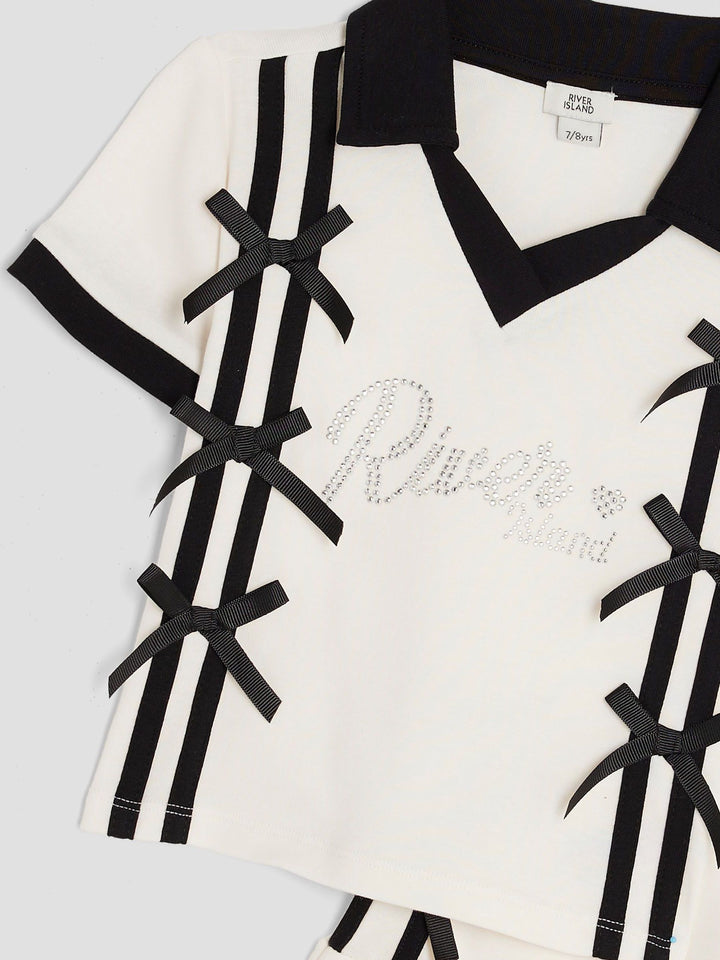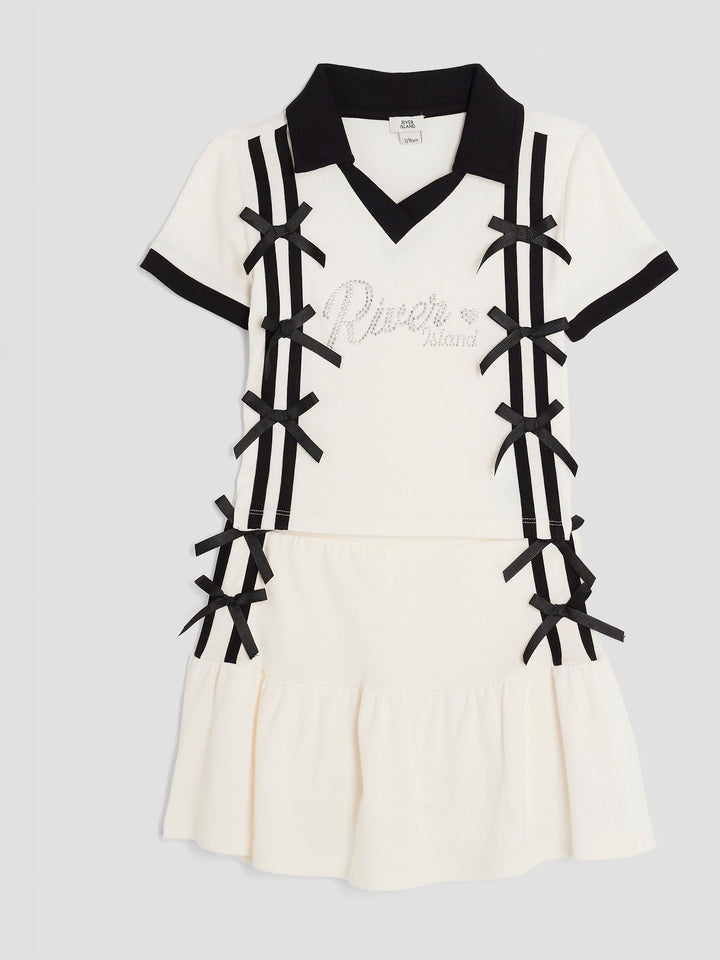 River Island Cream Girls Bow Polo Shirt and Skirt Set