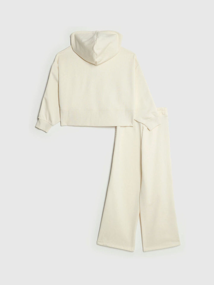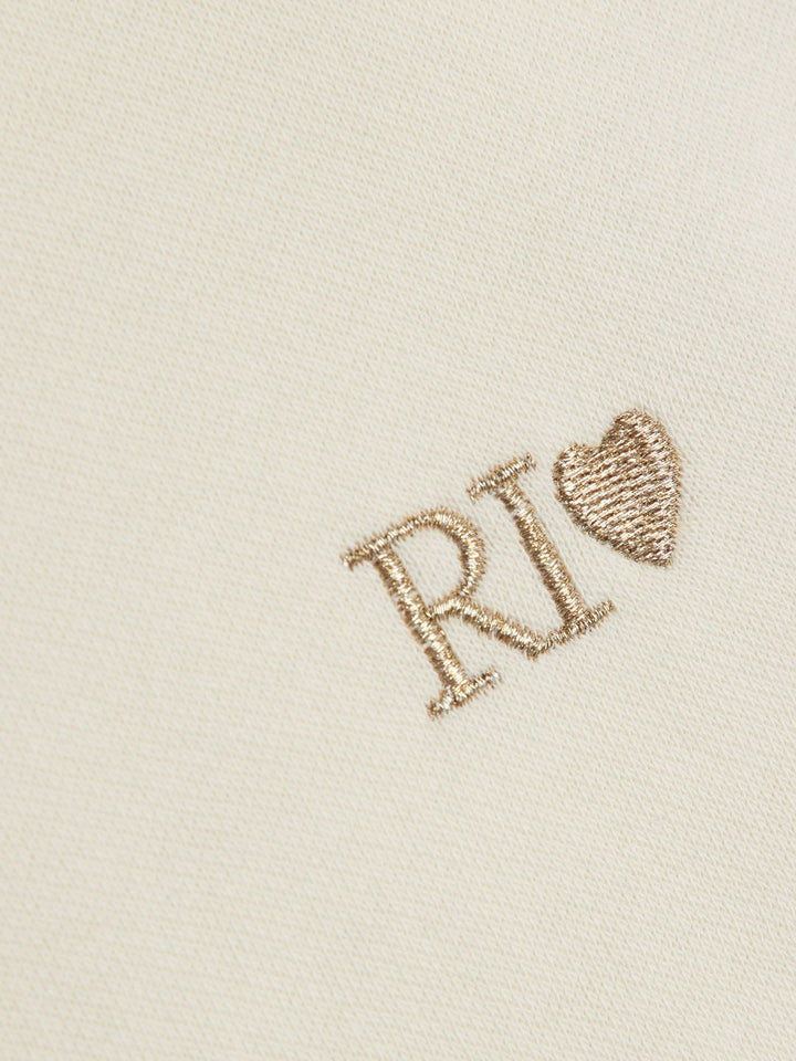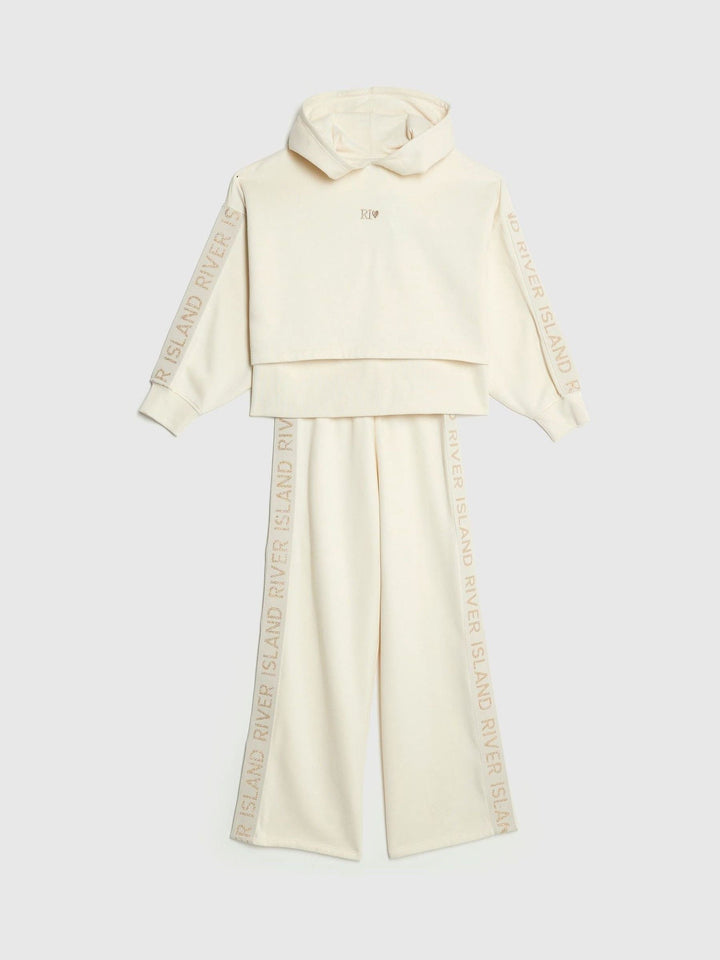 Set of 2 Cream Sweatshirt Hooded Embroidered RI graphic Long sequin RI waistband sleeves Joggers Side leg sequin RI waistband Elasticated waistband. Machine washable. 62% Cotton, 38% Polyester. Country of Origin: Bangladesh