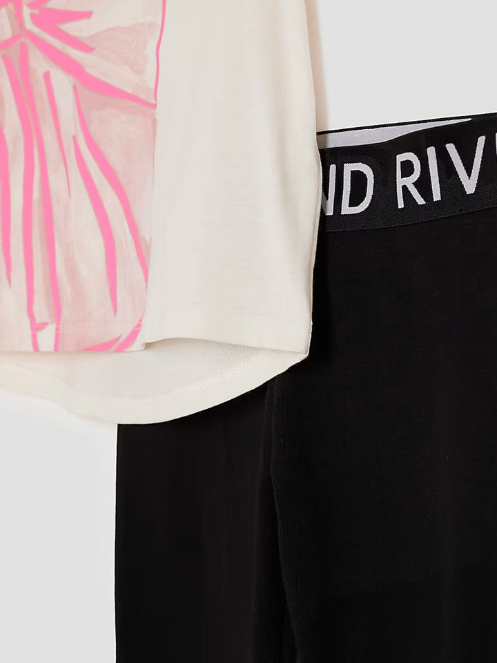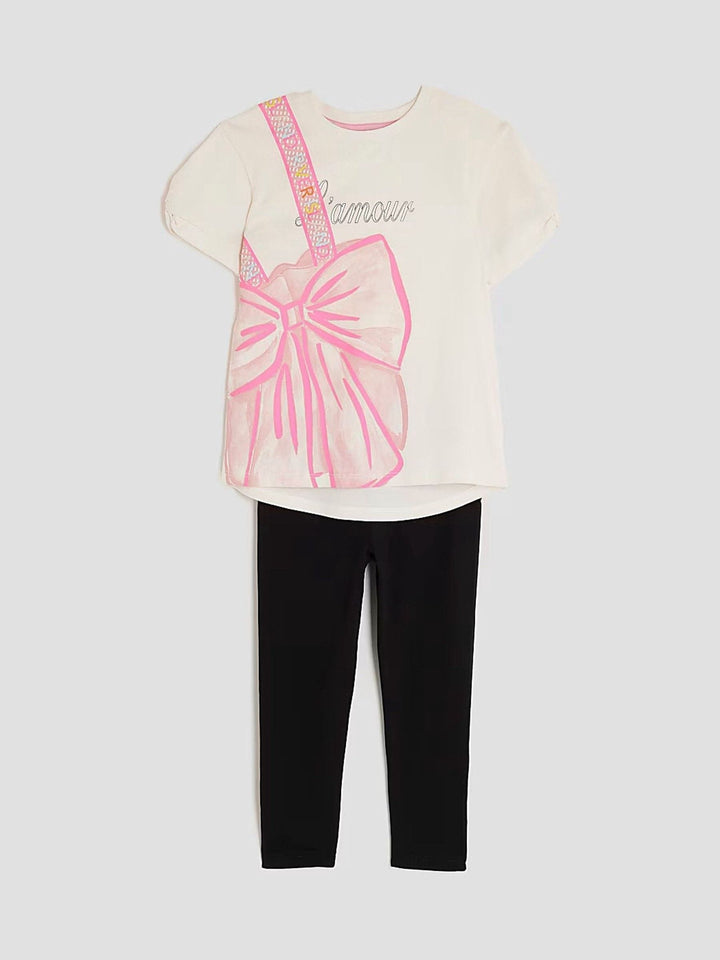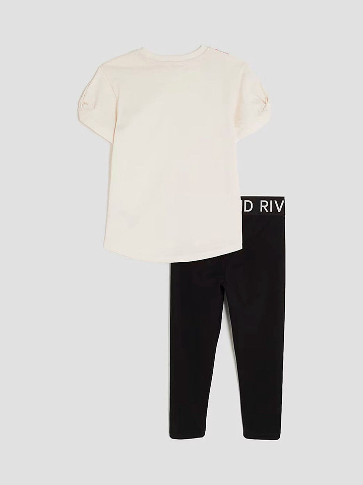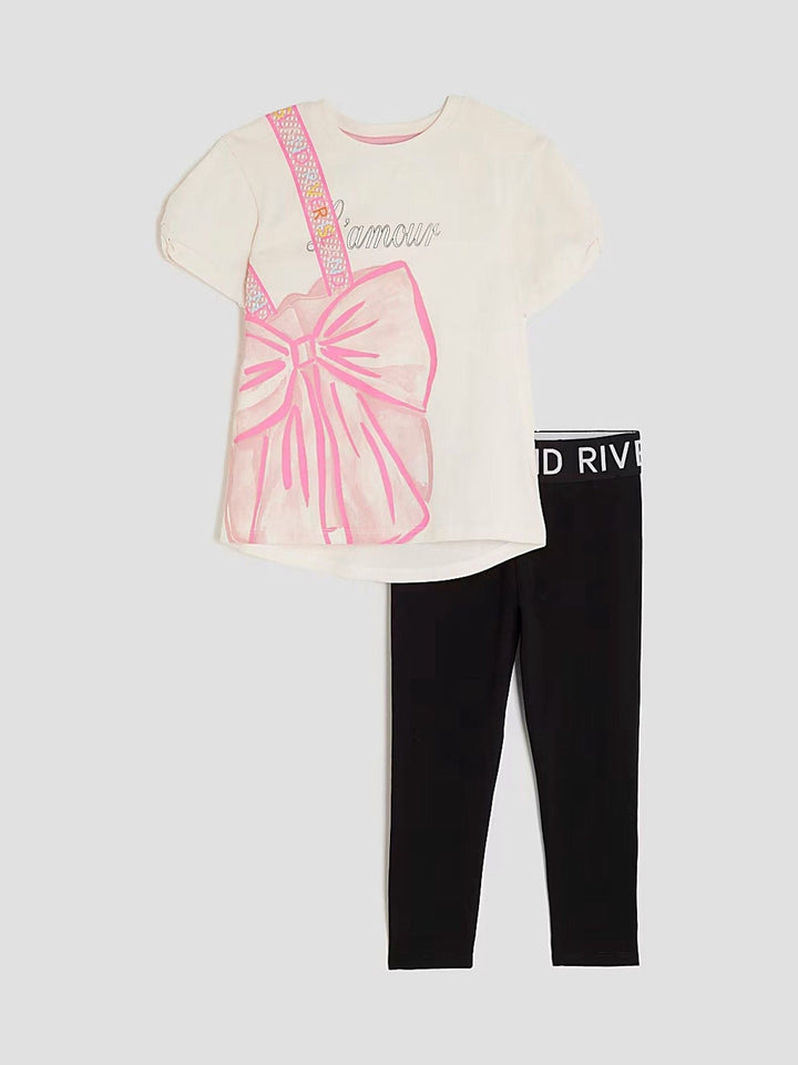 River Island Cream Lamour Bow Bag T-Shirt & Leggings Set