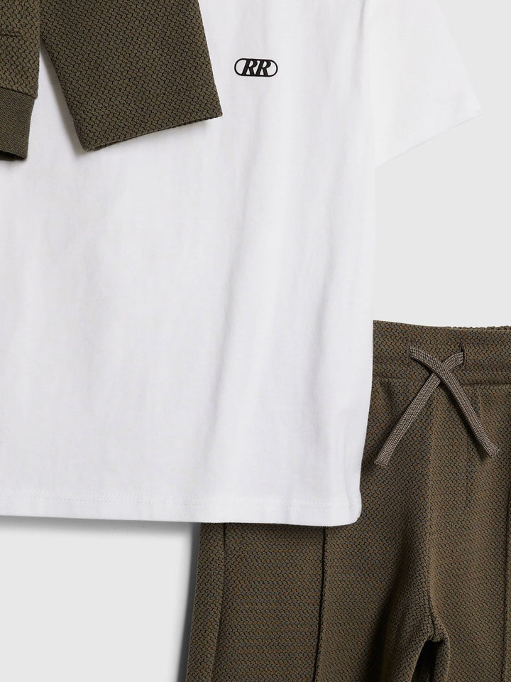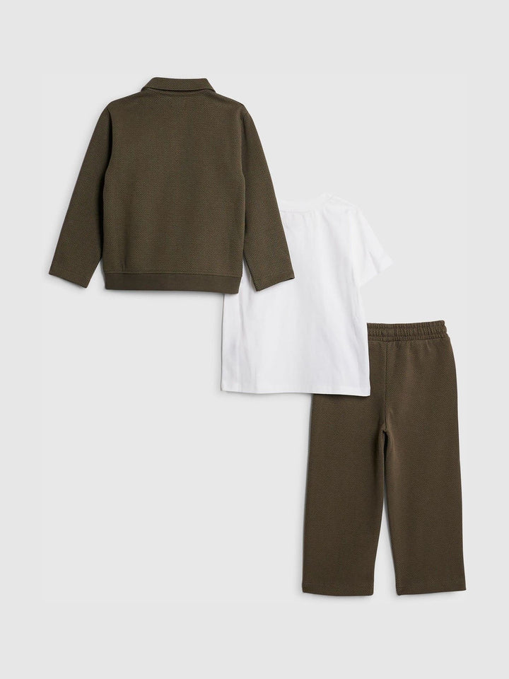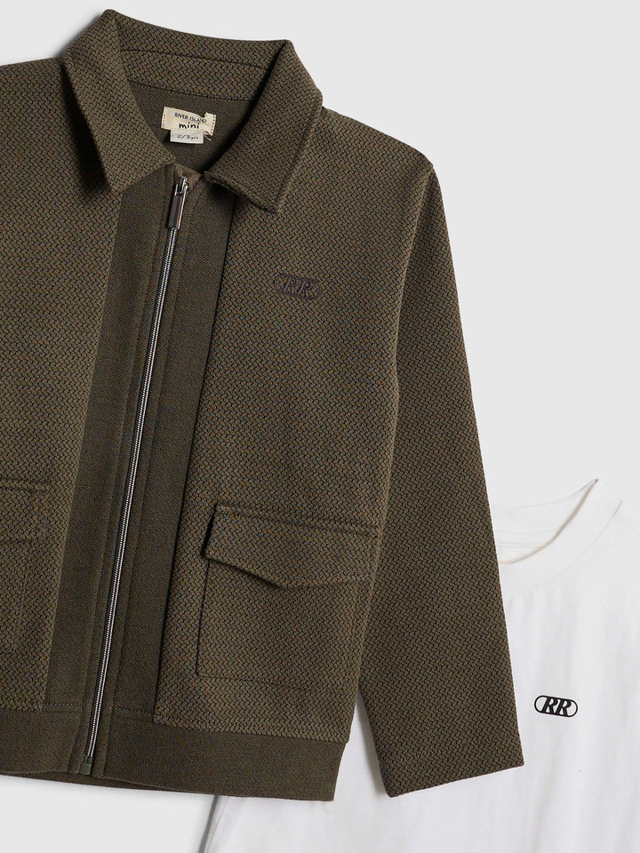 River Island Green Younger Boys Textured Harrington 3 Piece Set Jacket Top & Trouser Set