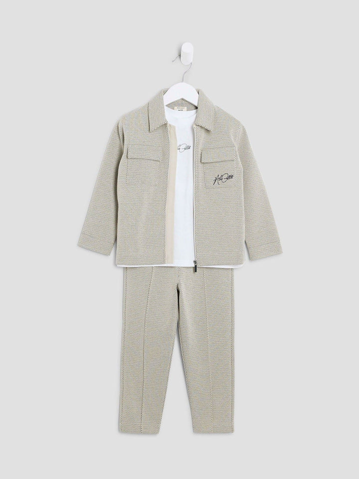 River Island Natural Boys Textured Harrington Top and Trousers Set 3 Pack