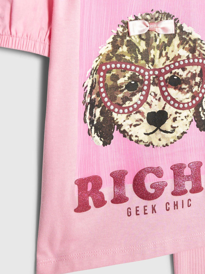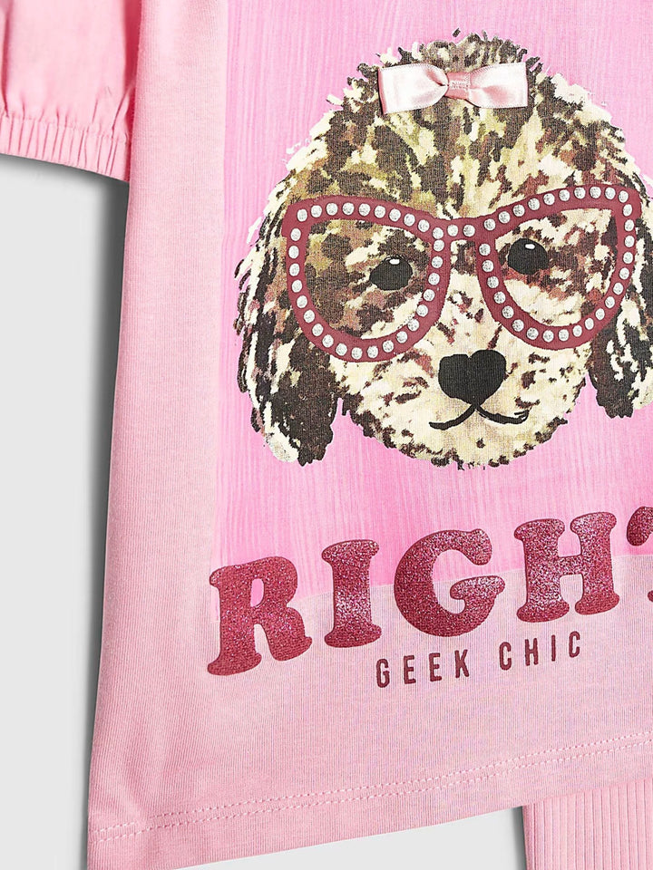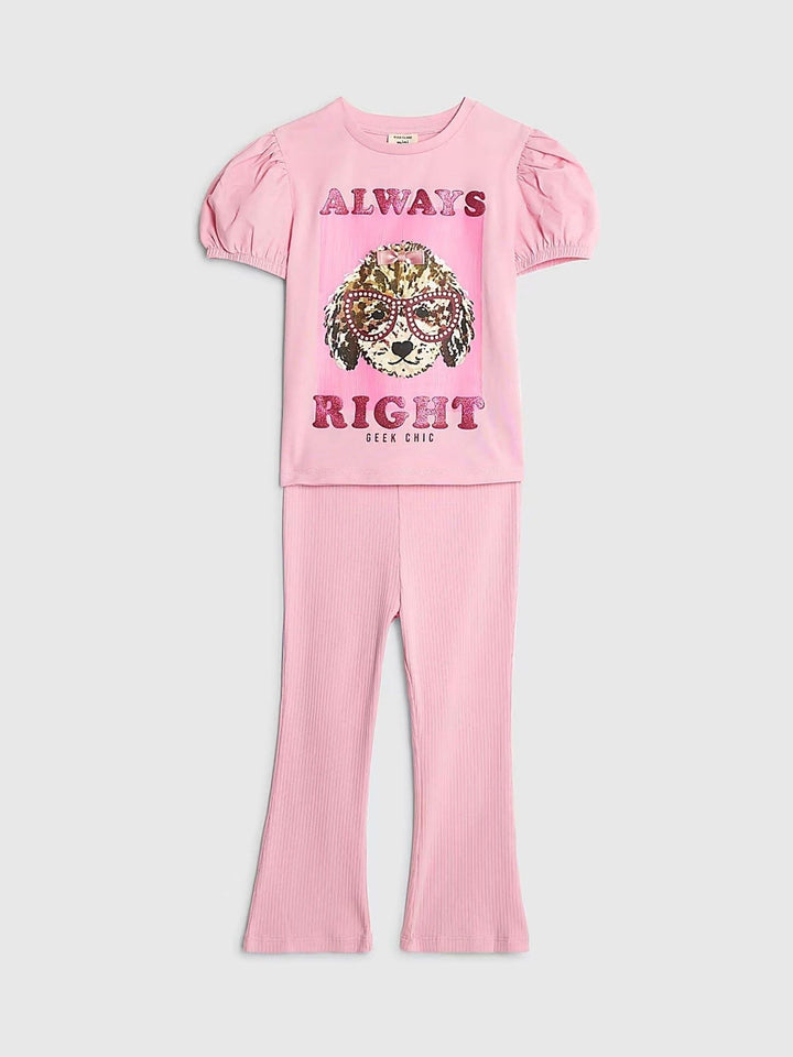 River Island Pink Always Right Dog T-Shirt & Rainbow Waistband Kickflare Leggings Set