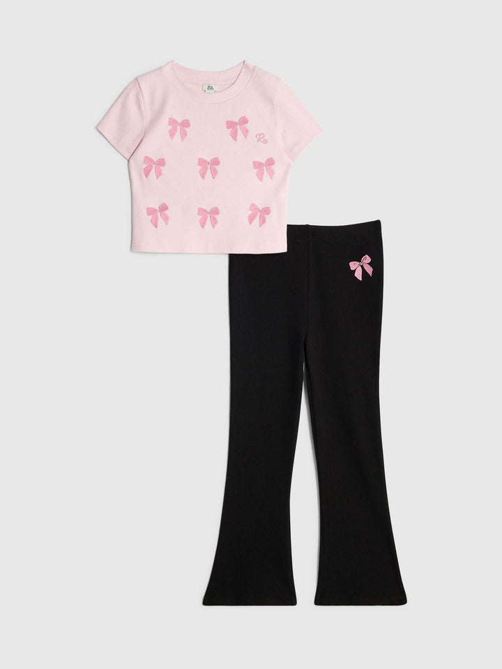 River Island Pink Bow Embellished Kickflare Top & Leggings Set