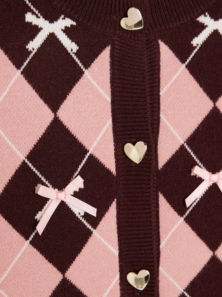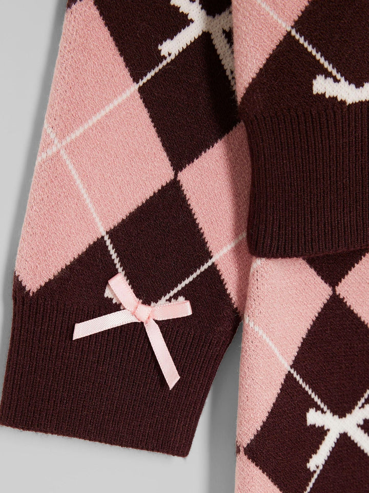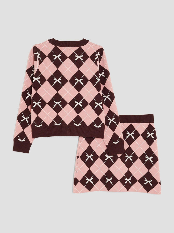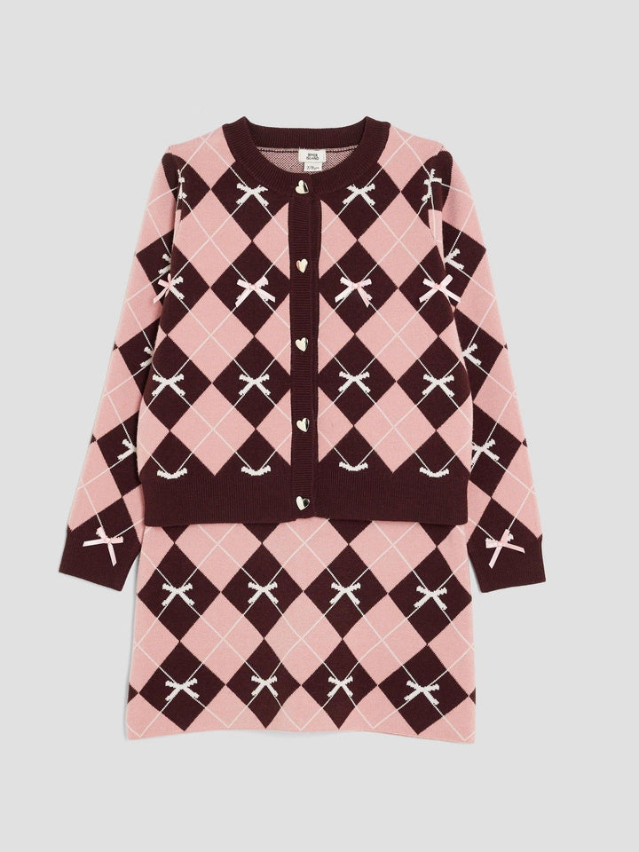 River Island Pink Girls Argyle Cardigan and Skirt Set