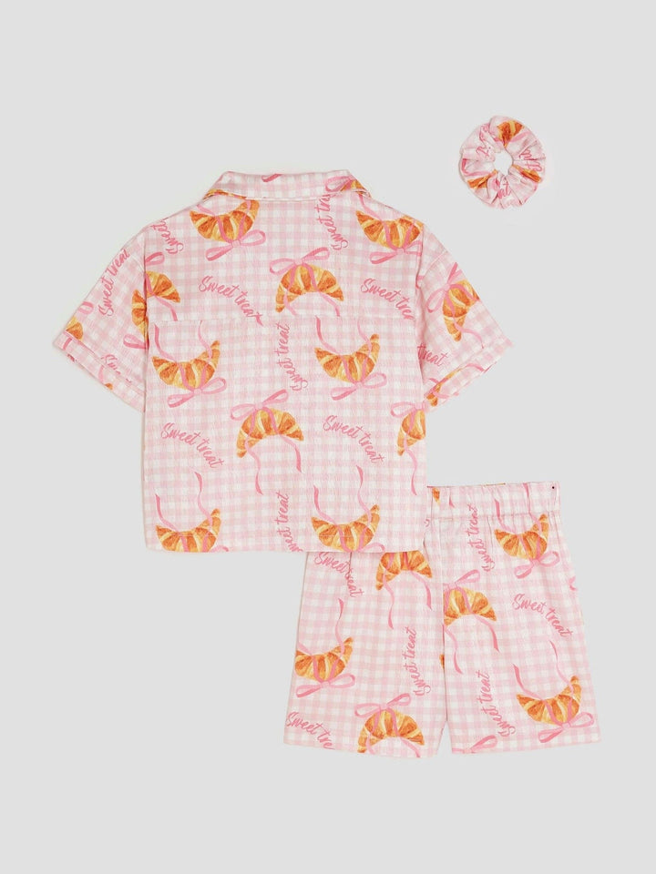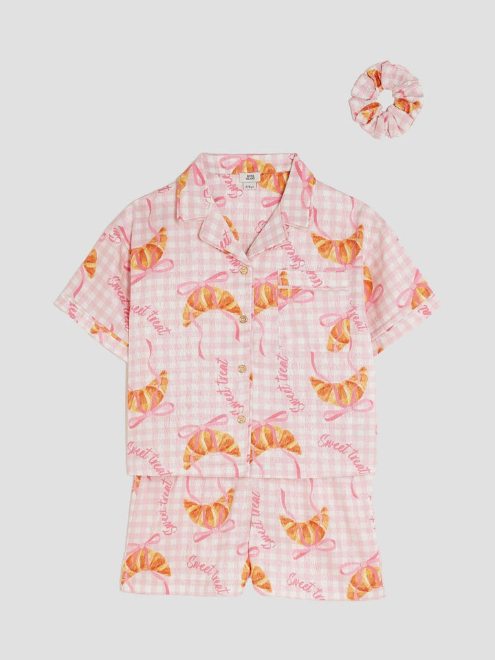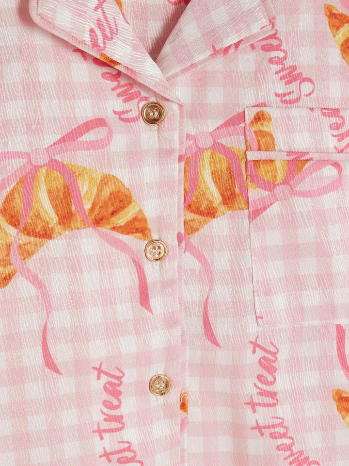 River Island Pink Girls Gingham Croissant Satin Pyjamas