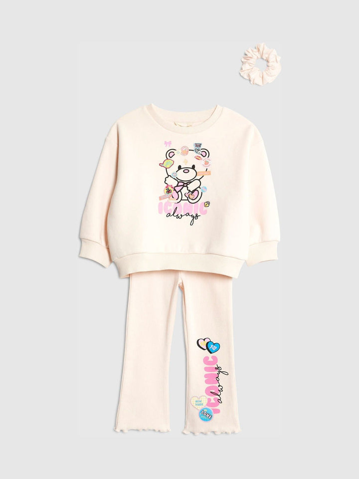 River Island Pink Iconic Bear Sweatshirt & Leggings 3 Piece Set