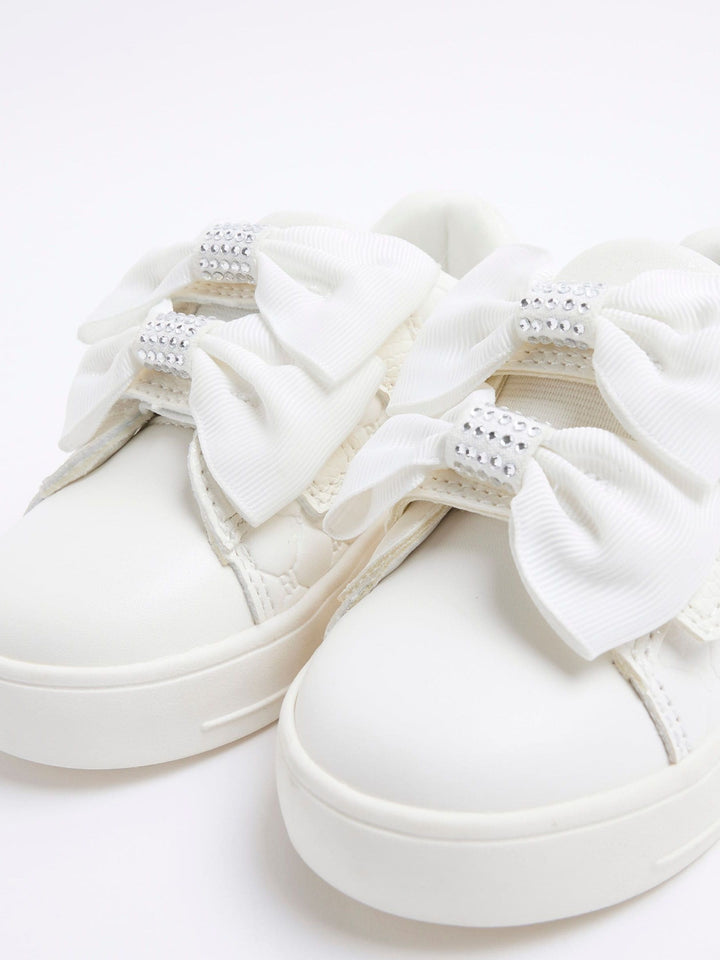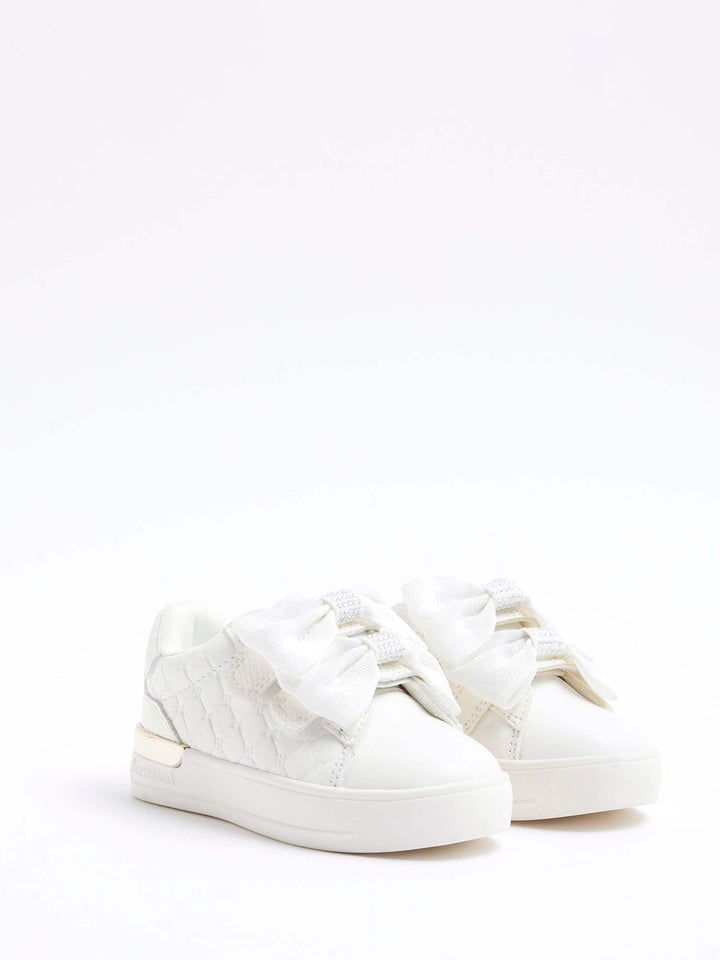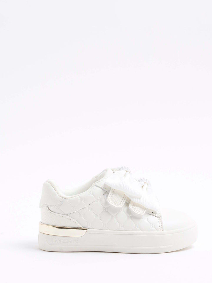 Flat soles Round toe RI monogram print Gold heel clip Bow detail Diamante embellishment Bow fastening Upper - 100% PU, Lining. and Sock - 100% PU. Sole - 100% Rubber. Country of Origin: China