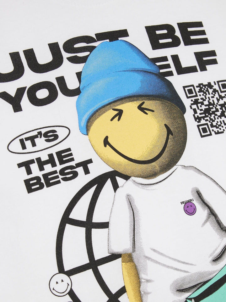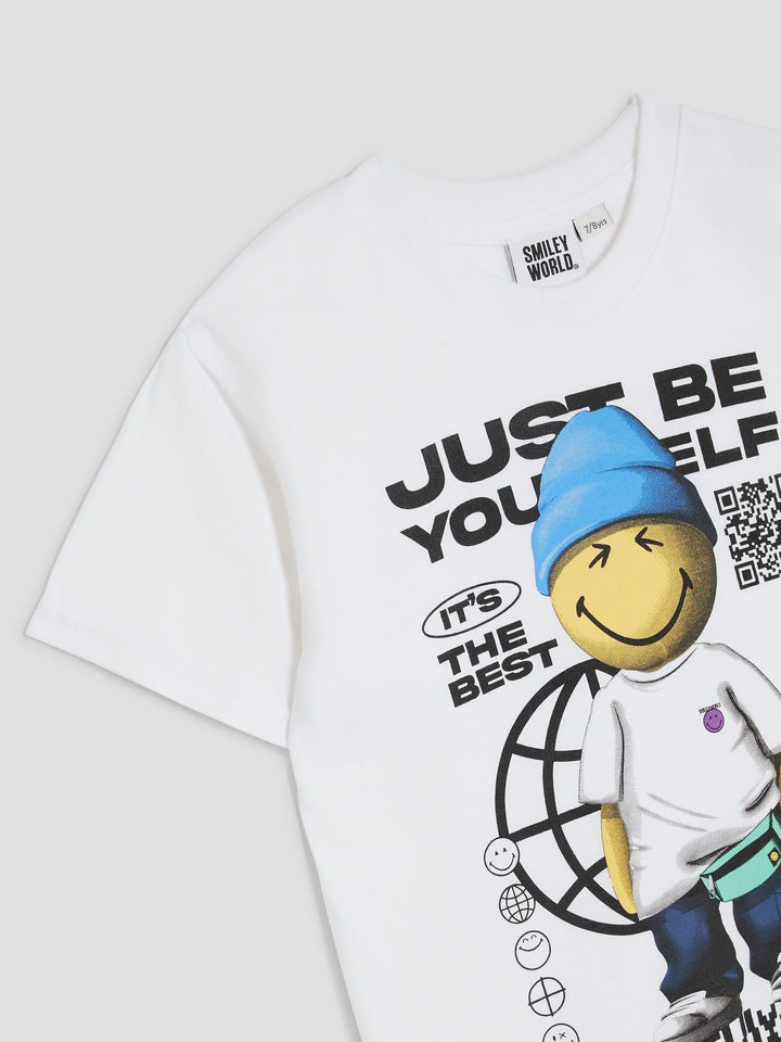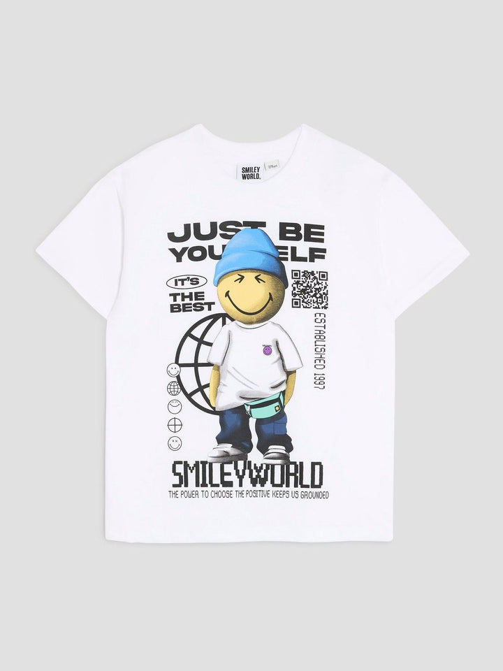 Crew neck SmileyWorld® print Short sleeves Lightweight Washable. 100% Cotton. Country of Origin: Great Britain