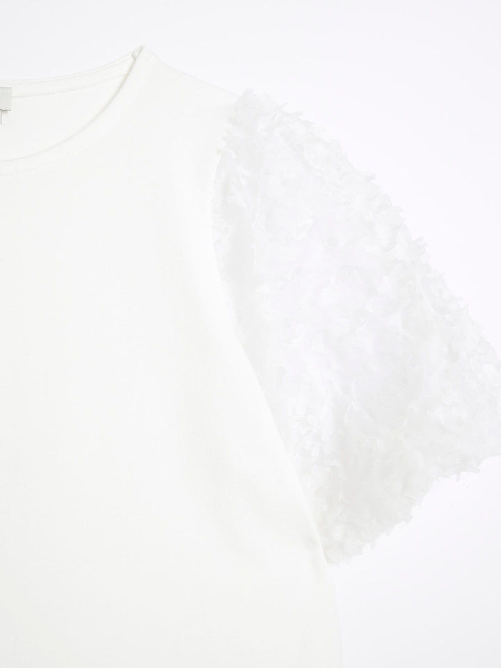 River Island White Girls Floral Print Mesh Sleeve 100% Cotton T-Shirt