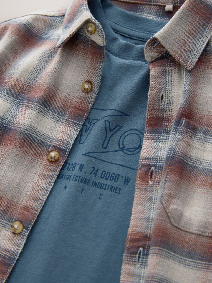 Rust Brown Long Sleeve Check Shirt and T-Shirt Set 2 Piece (3-16yrs)