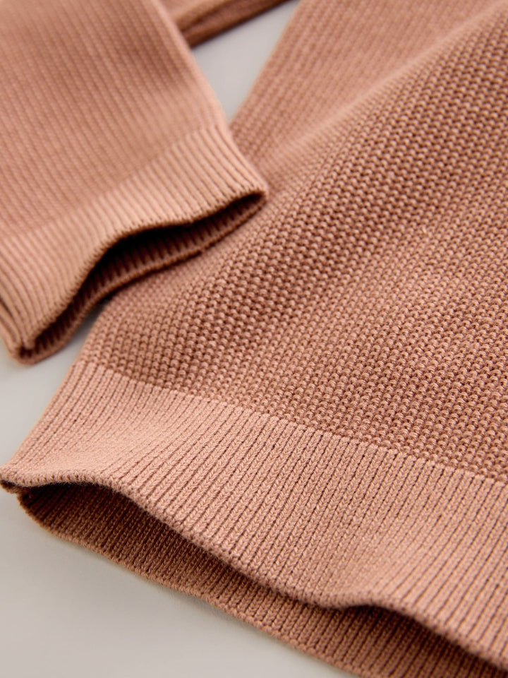 Rust Brown Long Sleeve Zip Neck Knitted Polo Shirt (3-16yrs)