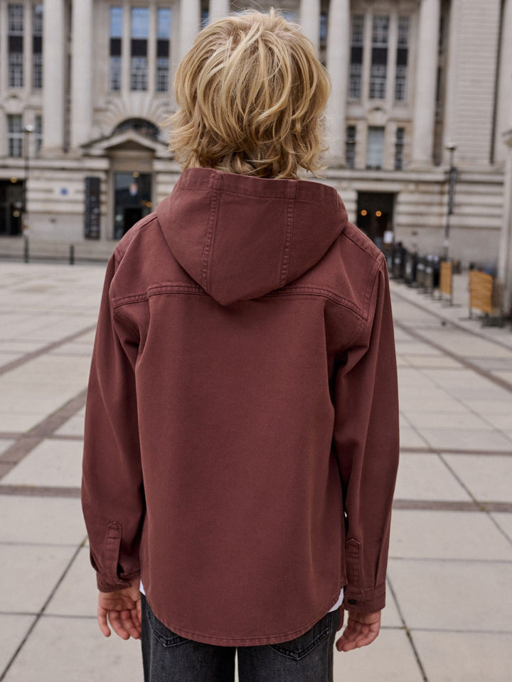 Rust Brown Twill Collar Hooded Overshirt (3-16yrs)