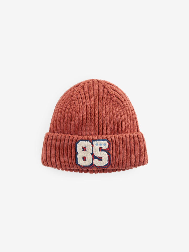 Keep him snug and warm during the colder months with our rust brown knitted beanie hat. The classic beanie style is knitted in a ribbed design and features a folded hem. Finished with an applique detailing on the front, this hat is a winter warmer must-have. Knitted design Turn-up cuff Applique detail Varsity design 100% Acrylic. Country of Origin: China