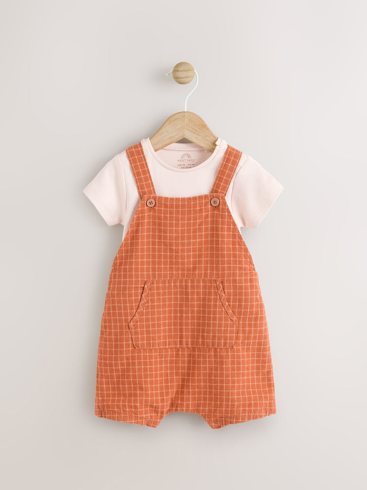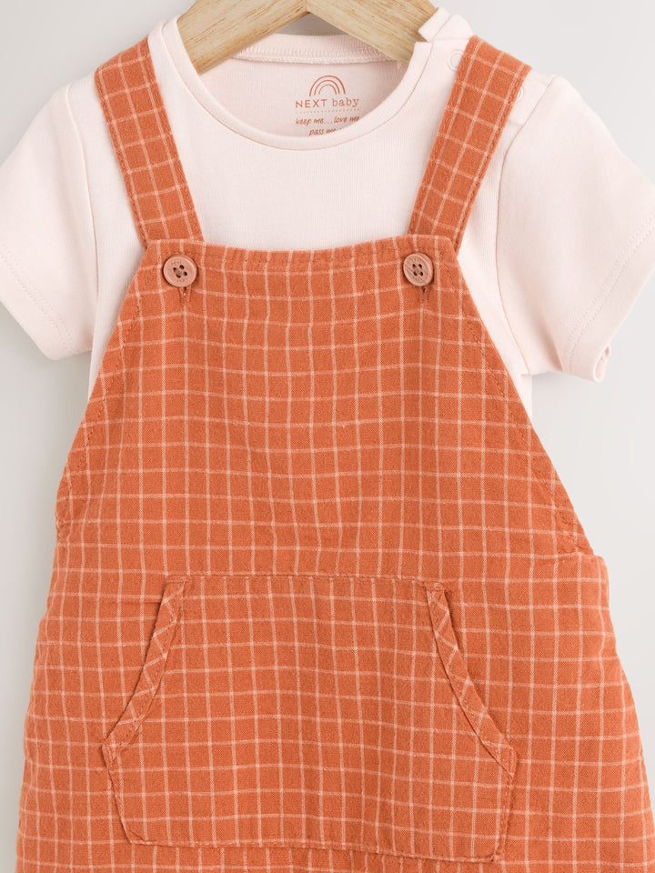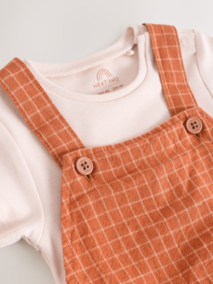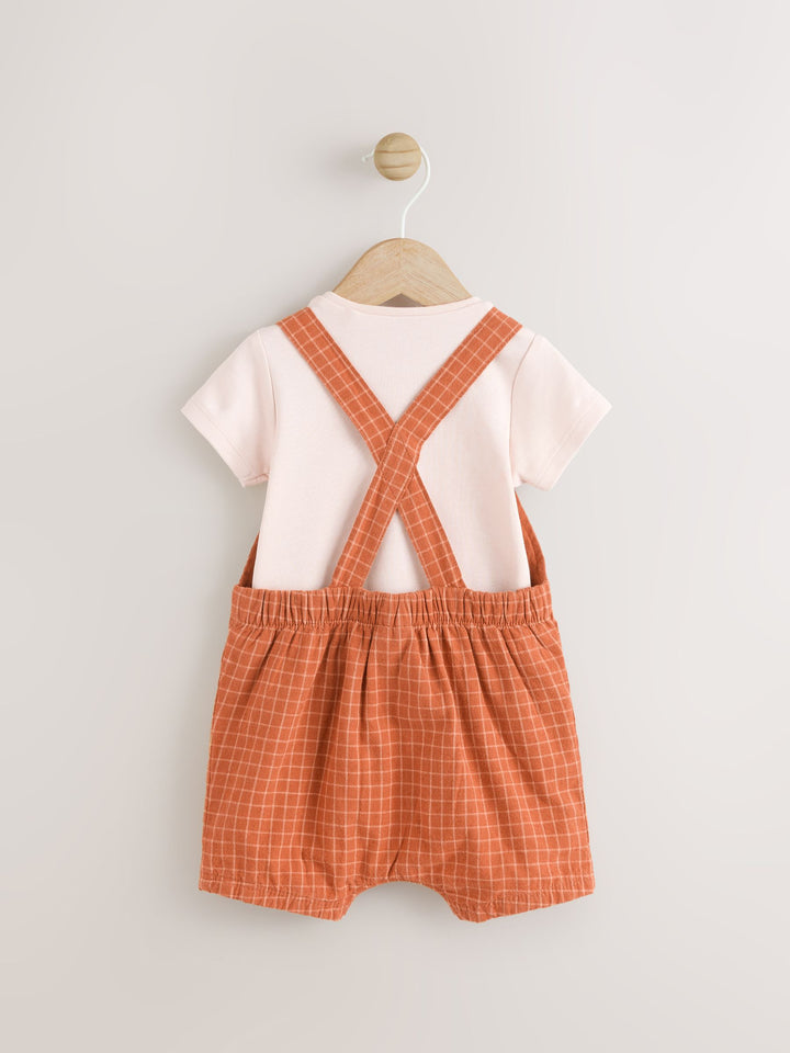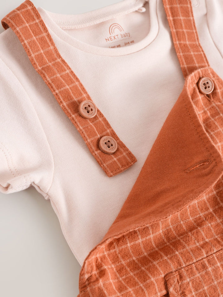 Rust Brown Woven Dungaree and Bodysuit Set (0mths-2yrs)