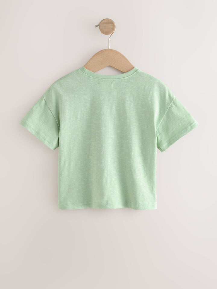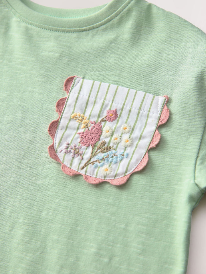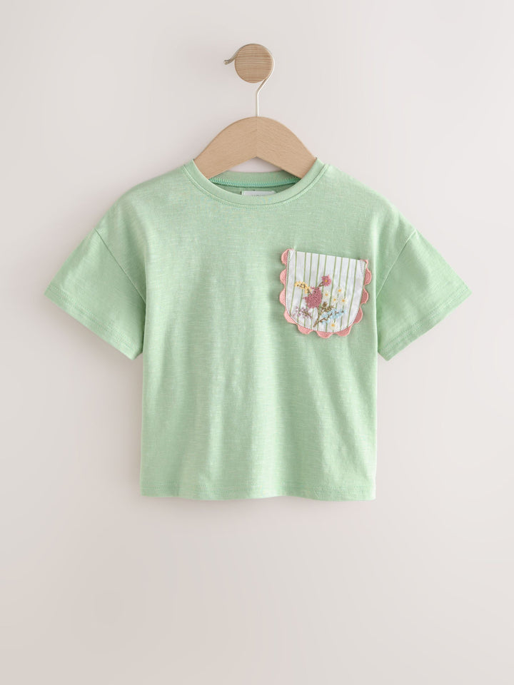 Sage Green 100% Cotton Short Sleeve Embroidered Pocket T-Shirt (3mths-7yrs)