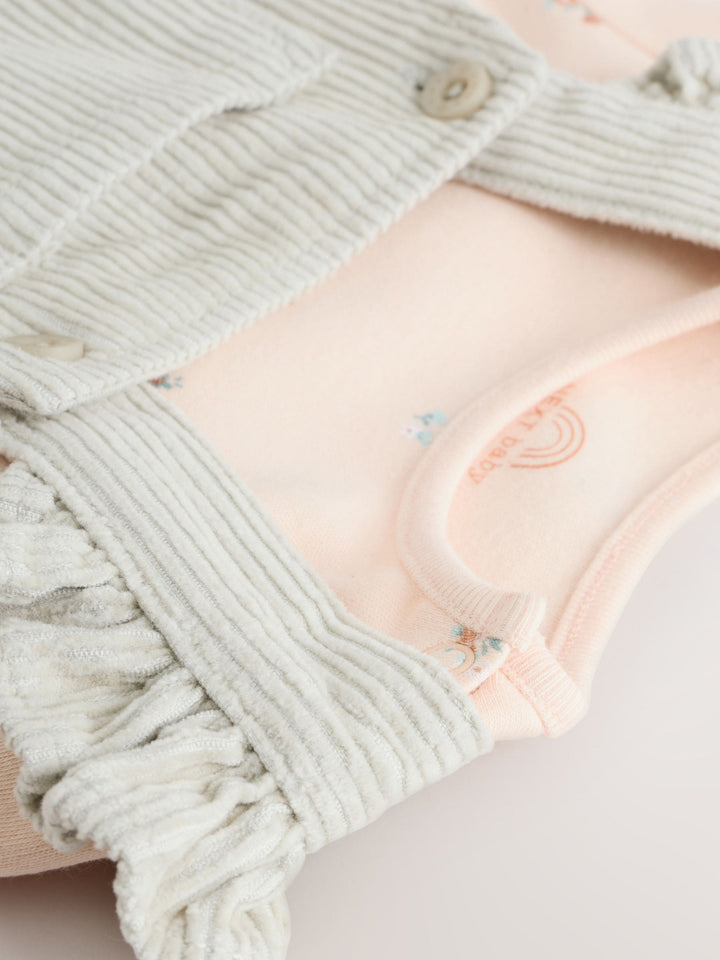 Sage Green Baby Print Long Sleeve Bodysuit and Cord Dungarees Set 2 Piece (0mths-2yrs)