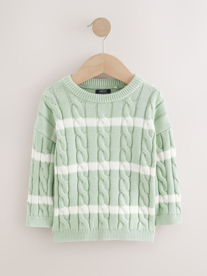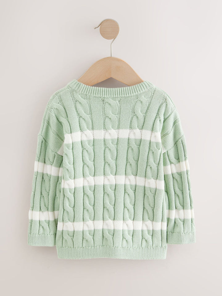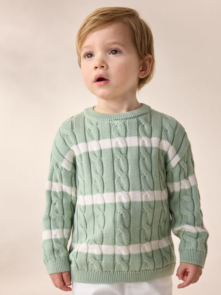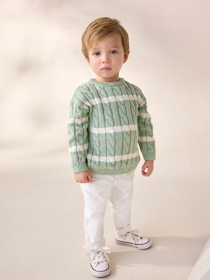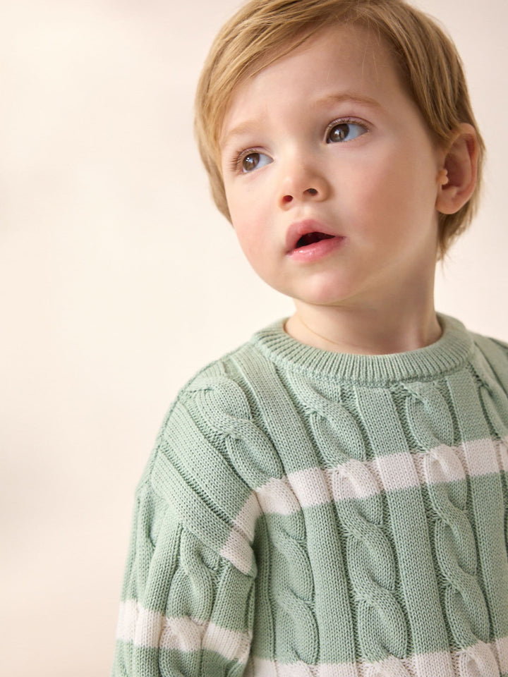 Sage Green Cable Knit Crew Neck Jumper (3mths-7yrs)