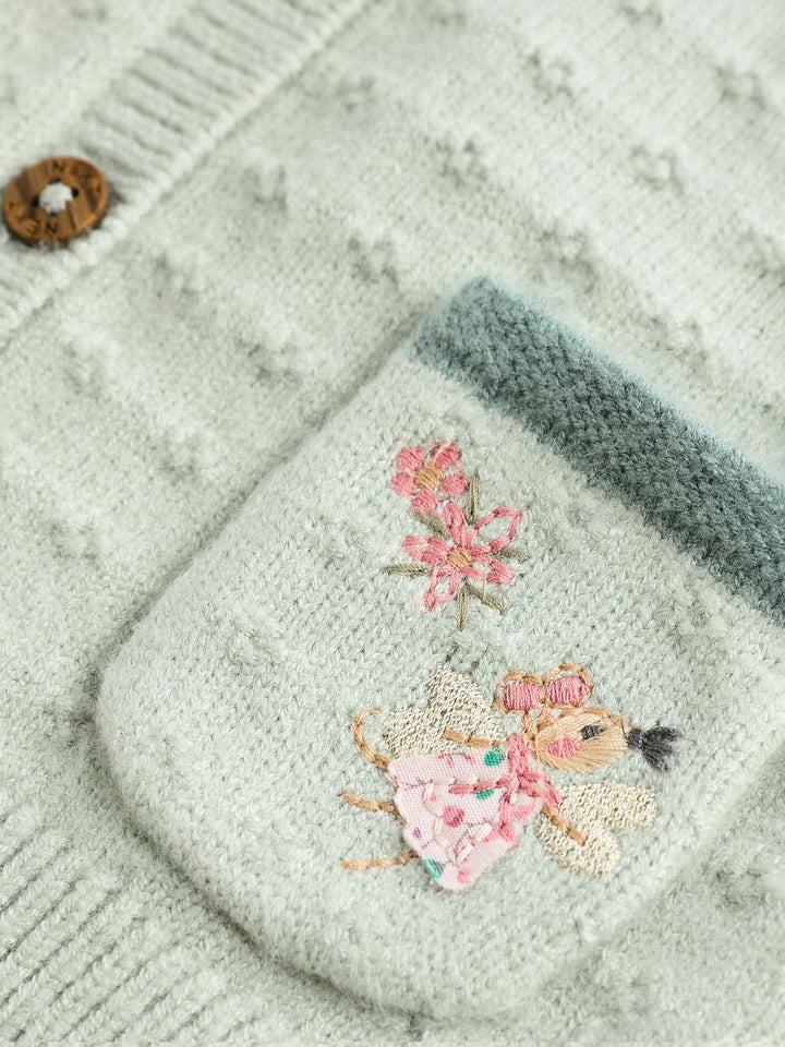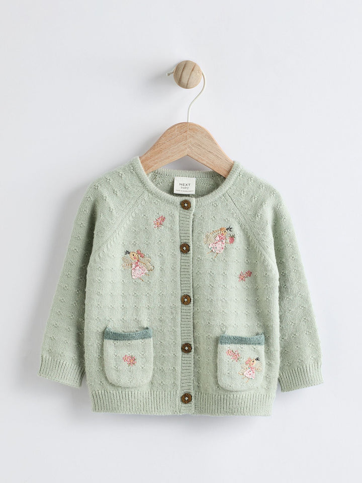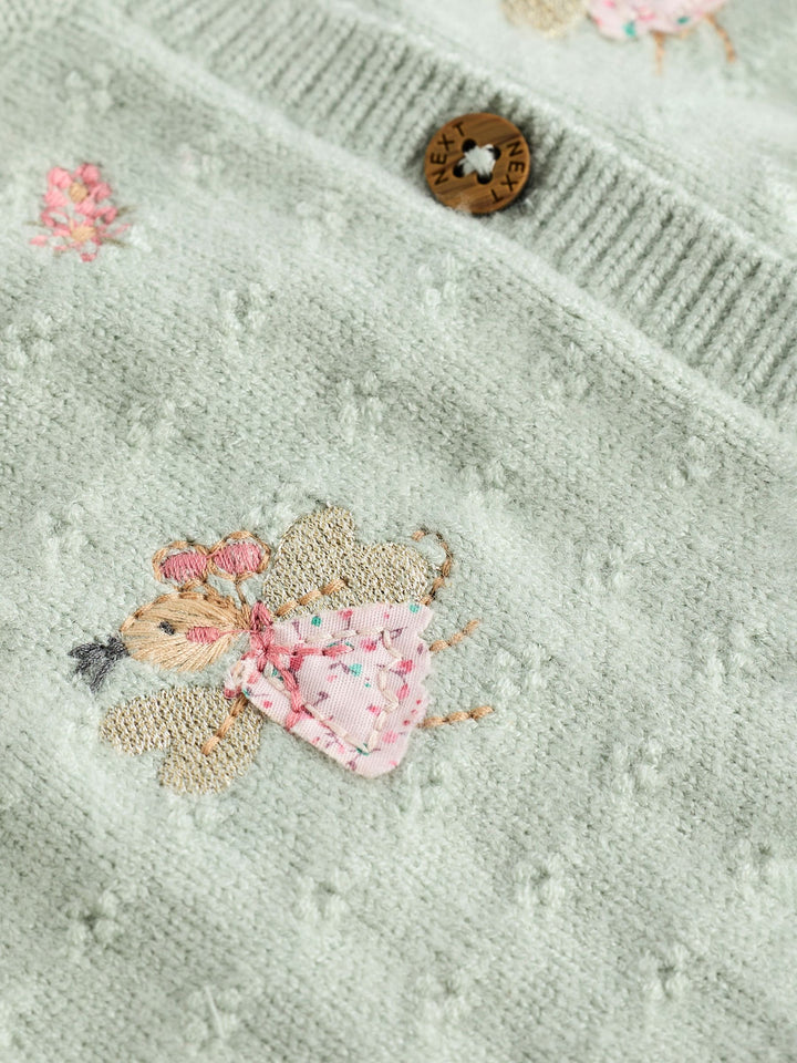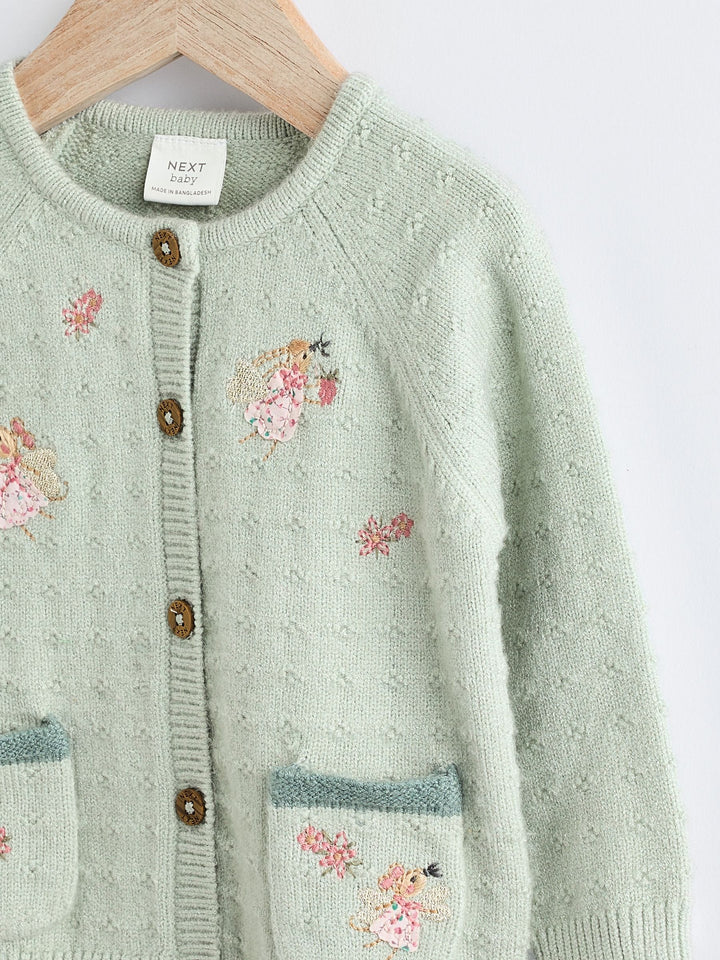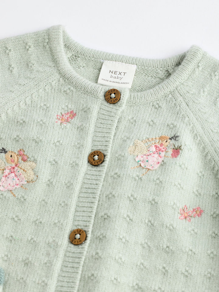 Sage Green Fairy Embroidered Baby Cardigan (0mths-2yrs)