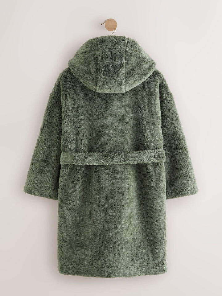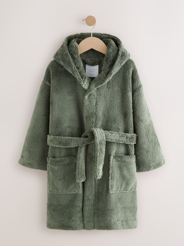 Keep them cosy as the nights draw in this winter, with this soft fleece robe, featuring a set-in hood, a waist belt fastening and two large hand pockets for their small essentials. Regular fit Fleece fabric Set-in hood Adjustable waist belt Hand pockets Machine washable. 75% Recycled polyester, 25% Polyester. Country of Origin: China Warning: Keep away from fire and flames.