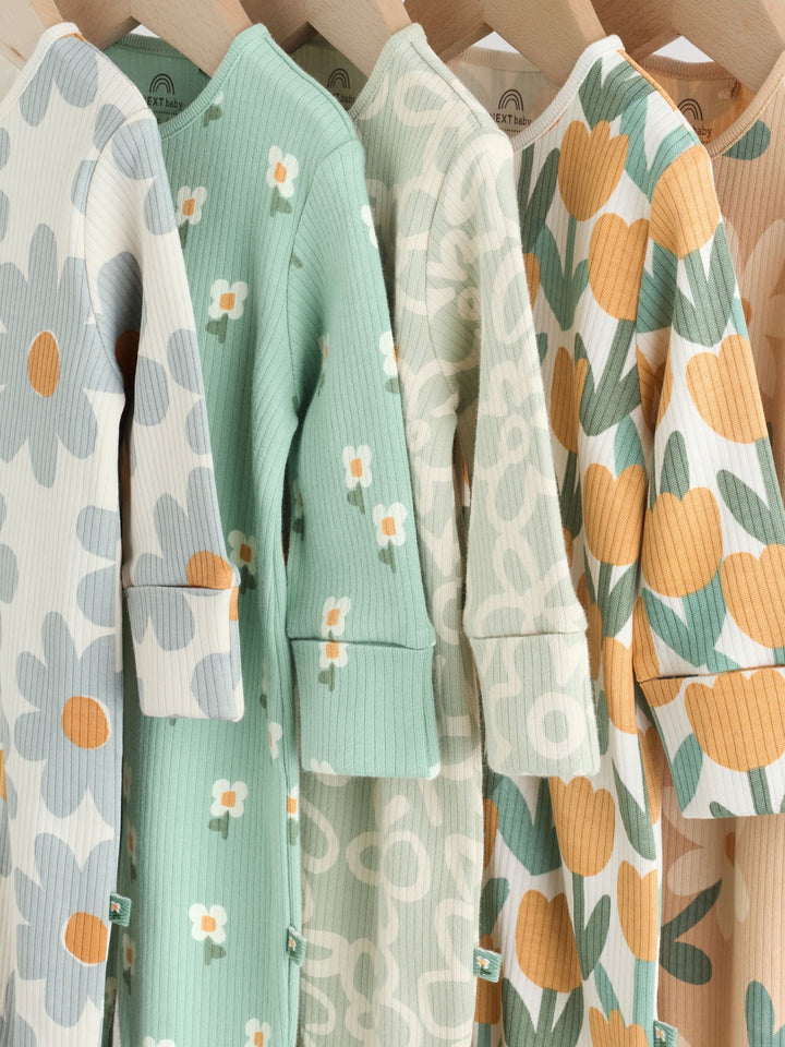 Sage Green Floral Baby Sleepsuits 5 Pack (0mths-2yrs)