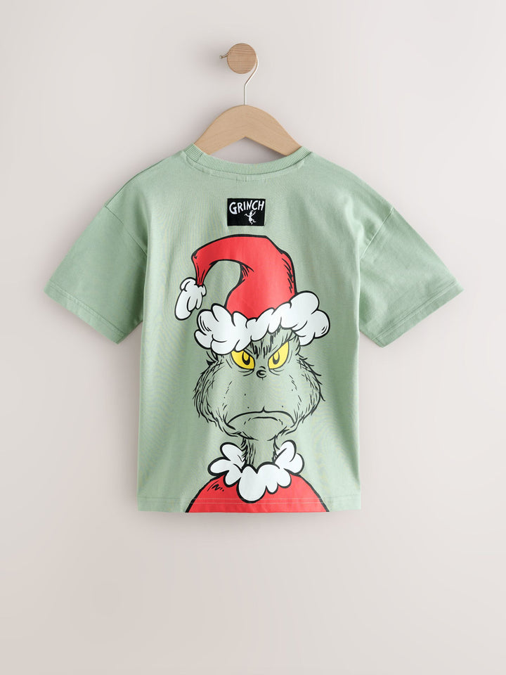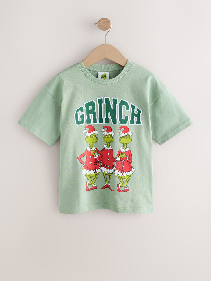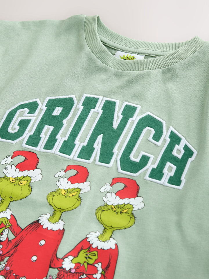 Sage Green Grinch Short Sleeve Christmas T-Shirt (3-16yrs)