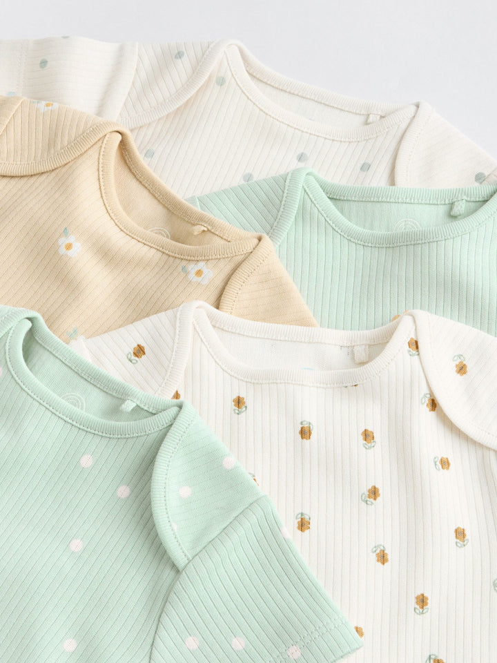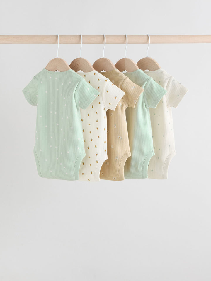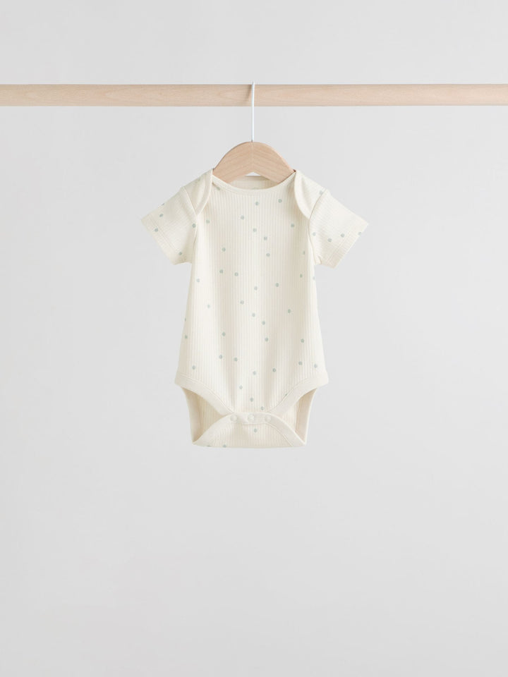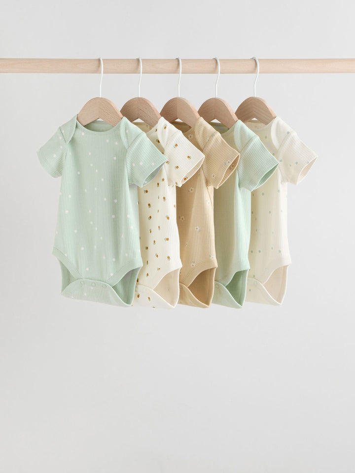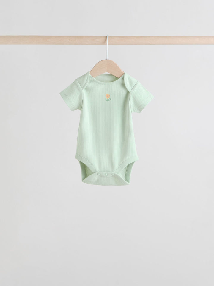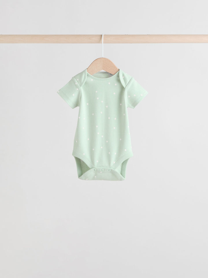 Sage Green Short Sleeve Rib Baby Bodysuits 5 Pack