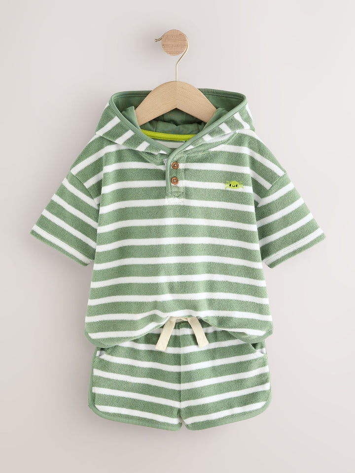 Sage Green Stripe 100% Cotton Toweling Set (3mths-7yrs)