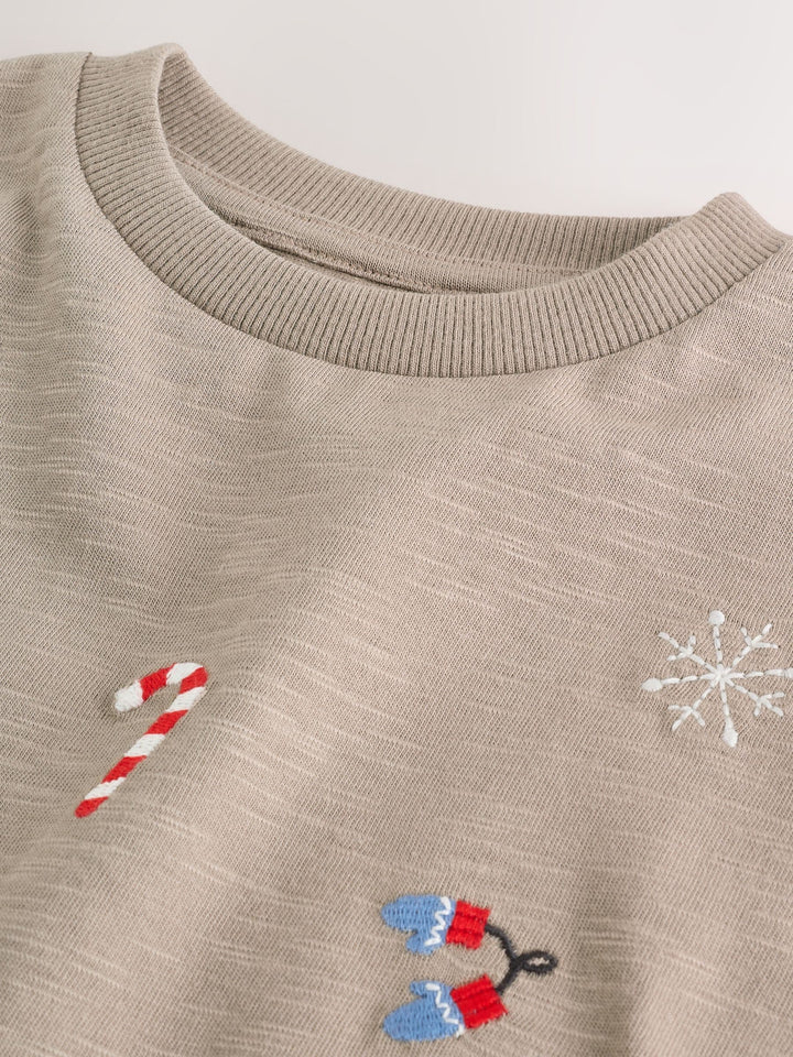 Stone All-Over Embroidered Christmas Long Sleeve T-Shirt (3mths-7yrs)