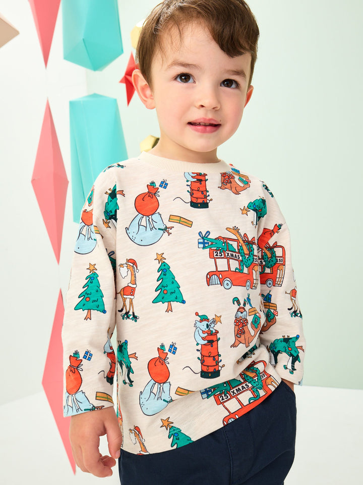 Add a festive touch to their wardrobe with this playful printed Long Sleeve T-Shirt. Featuring a cheerful Christmas design enhanced with an engaging puff print texture, it is the perfect fun piece for the holiday season. Puff print Christmas design Long sleeve t-shirt Machine washable. 100% Cotton. Country of Origin: Bangladesh