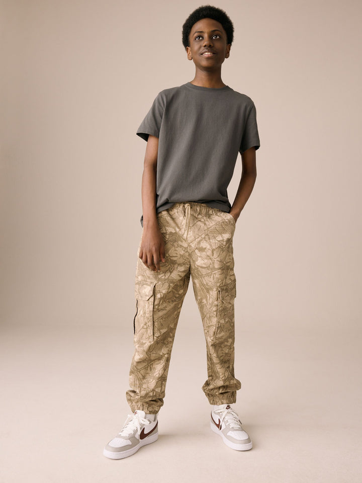 Our boys cargo trousers provide the right blend of fashion and function. Made from a cotton blend fabric with an adjustable and elasticated waist to ensure a cosy and comfortable fit, perfect for their next adventure. With practical pockets front and side pockets, these trousers team perfectly with a relaxed sweatshirt and their favourite trainers. Cargo style trousers Adjustable waist Stretch cotton 98% Cotton, 2% Elastane. Country of Origin: Bangladesh