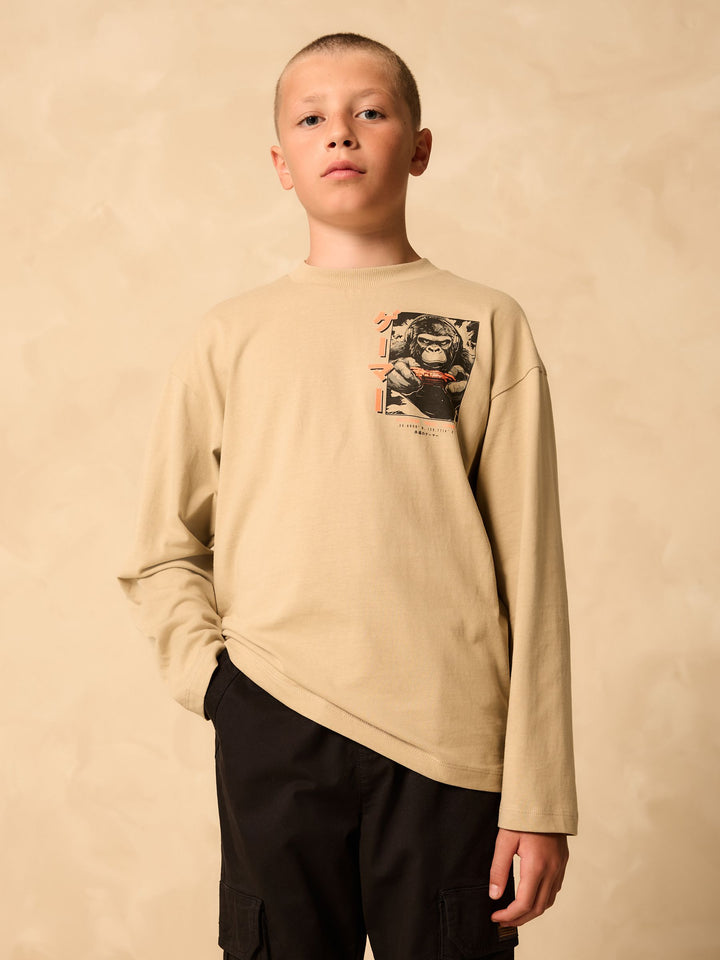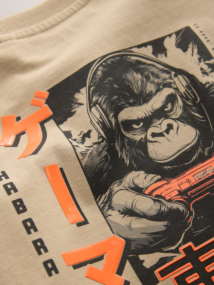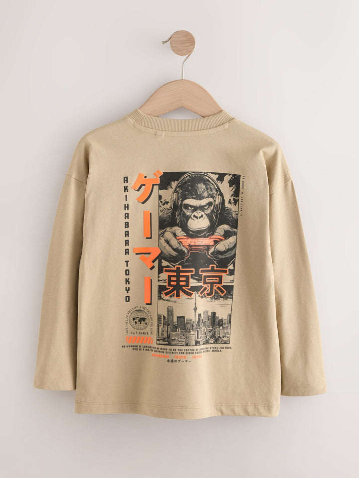 Stone Gorilla Gamer Relaxed Fit Graphic Print Long Sleeve Cotton T-Shirt (3-16yrs)